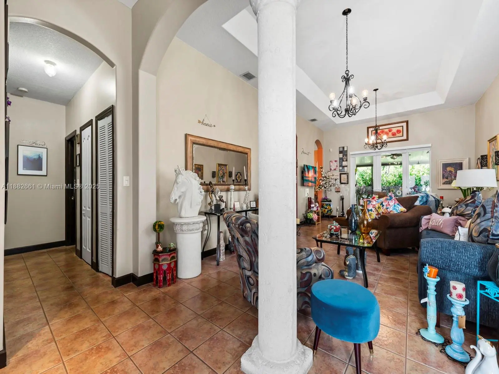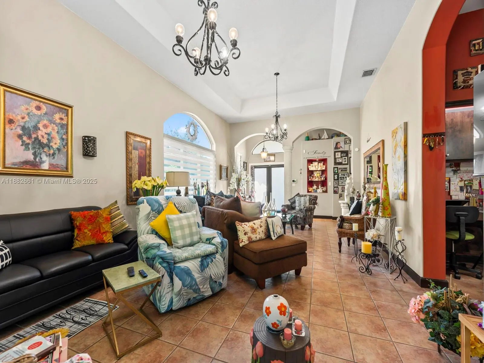 Welcome to your new home on Riviera Trace! This beautifully maintained 3-bedroom, 2-bath residence with a 1-car garage is move-in ready and brimming with upgrades. Step inside to enjoy soaring ceilings, impact windows, a 2019 roof, and a newer AC for comfort and peace of mind. The thoughtful layout offers walk-in closets with custom built-ins and a convenient office desk area just off the kitchen perfect for modern living. Outside, the expanded front yard tile enhances curb appeal, the fully enclosed backyard features a brand-new covered patio roof, creating your own private oasis for entertaining or relaxing. Near top-rated schools (Belen Jesuit prep school),Dolphin Mall, and Turnpike, this home offers both comfort and convenience. Clean, bright, and move-in ready—furniture negotiable!