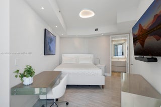 Located directly on the pristine shores of Sunny Isles, this 2 bed + oversized den w/en-suite bath, 3 bath residence in the coveted 07 line at Trump Tower III is thoughtfully crafted with contemporary finishes and high-end fixtures. Floor-to-ceiling windows, 11-ft ceilings, and a private elevator foyer open to expansive ocean, intracoastal, and downtown Miami views. The open-concept kitchen boasts custom cabinetry, new European appliances, and a built-in bar with wine fridge, while spa-inspired baths feature floating vanities, Toto toilets, and glass showers. Residents enjoy beach access with full service and chairs, heated pool, seaside restaurant with room service, spa, fitness center, clubroom, concierge, and valet. A sanctuary where modern design meets effortless beachfront living.