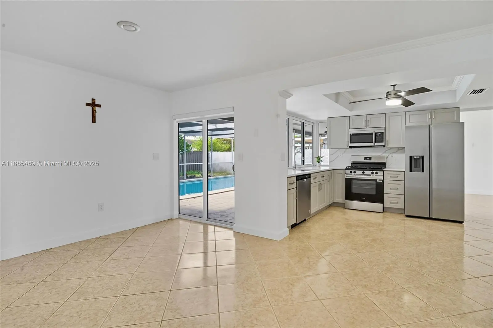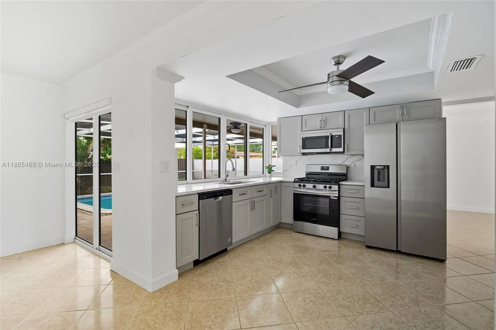 Beautifully maintained home with no HOA fees. This charming 4-bedroom, 2-bathroom residence has been lovingly cared for by its owners. The home features a desirable split floor plan filled with natural light and a desirable family room. The kitchen and bathrooms have been recently remodeled, and the property features high-impact windows. Enjoy a private backyard with a pool and a delicious mango tree. Additional highlights include a double-car garage, a roof replaced around 2016, an A/C unit installed in 2020, a water heater in 2017, and high-impact windows in 2018. The appliances have been replaced recently.