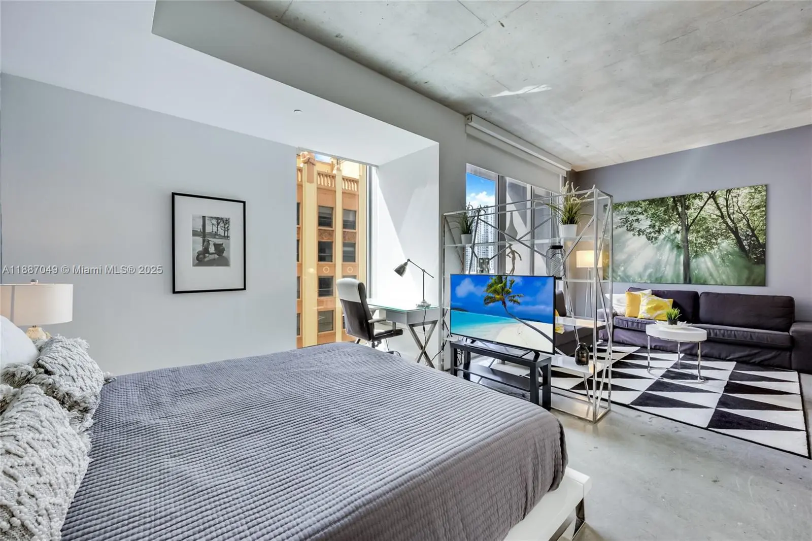 Per the original floor plan, this is a 1 bedroom / 1 bathroom residence. It features a sleek, open-concept layout with high ceilings and floor-to-ceiling windows. The unit is turnkey & fully furnished, in the heart of Downtown Miami & w/ beautiful city views. Located steps from Brickell, this unit features polished concrete floors, 10-ft ceilings, Italian cabinetry & stainless-steel appliances. Washer & dryer in unit. Amenities include 24-hour concierge & valet, rooftop pool, gym, TV room, lounge & more. Building allows flexible lease terms, including short-term rentals. Minutes to Bayfront Park, Metromover, Brickell City Centre, Whole Foods & more.. The building does not offer parking; valet service on site or rental options nearby. Listing Agent is the property owner.