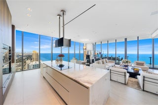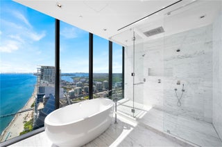 FULL-FLOOR DESIGNER OCEANFRONT LOWER PENTHOUSE WITH UNOBSTRUCTED 360° VIEWS DESIGNED BY TROY DEAN INTERIORS WITH SOARING 14 FT CEILINGS + PRIVATE POOLSIDE CABANA AT MUSE SUNNY ISLES! Encompassing 5 bedroom + 7.5 baths + service quarters. 6,106 SF of interior + 2,264 SF of Terraces. Italian marble & wood flooring. Two summer kitchens on Deep Terraces with ocean, intracoastal & city sunset views. Italkraft Open Chef’s kitchen + top-of-the-line Sub-Zero & Wolf appliances, dual ovens & dishwashers. Master suite features his & hers baths + unobstructed ocean vistas. Savant Smart Home System, 6 automated parking spaces + 2 storage units. Muse is a boutique oceanfront building with premium amenities: on-site restaurant, fitness center, resort-style pool & spa, 24/7 concierge, valet & security.