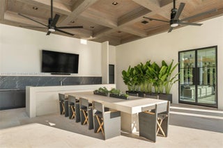 Welcome to Villa Riva, a modern luxury masterpiece in Boca Raton. This 10,000+ SF estate offers 6 beds, 6.5 baths, & 150 feet of prime Intracoastal water frontage, featuring custom designed furniture and the highest quality millwork and stone work. The villa boasts an expansive kitchen and adjoining family room w/ Brazilian Casablanca quartzite counters. A hidden butler's prep kitchen adds convenience for seamless entertaining. The primary suite is a private retreat w/ a stunning Belvedere quartzite bath & a boutique-style walk-in closet. Guest bedrooms boast Silver Root Italian marble & travertine finishes. Marmorino plaster walls create a modern Venetian ambiance, complemented by Tropic Gold quartzite in the foyer. Equipped w/ Josh AI & Crestron tech, enjoy the finest in luxury living.