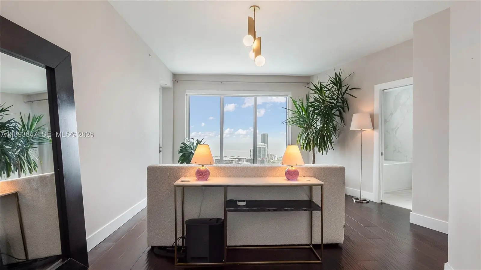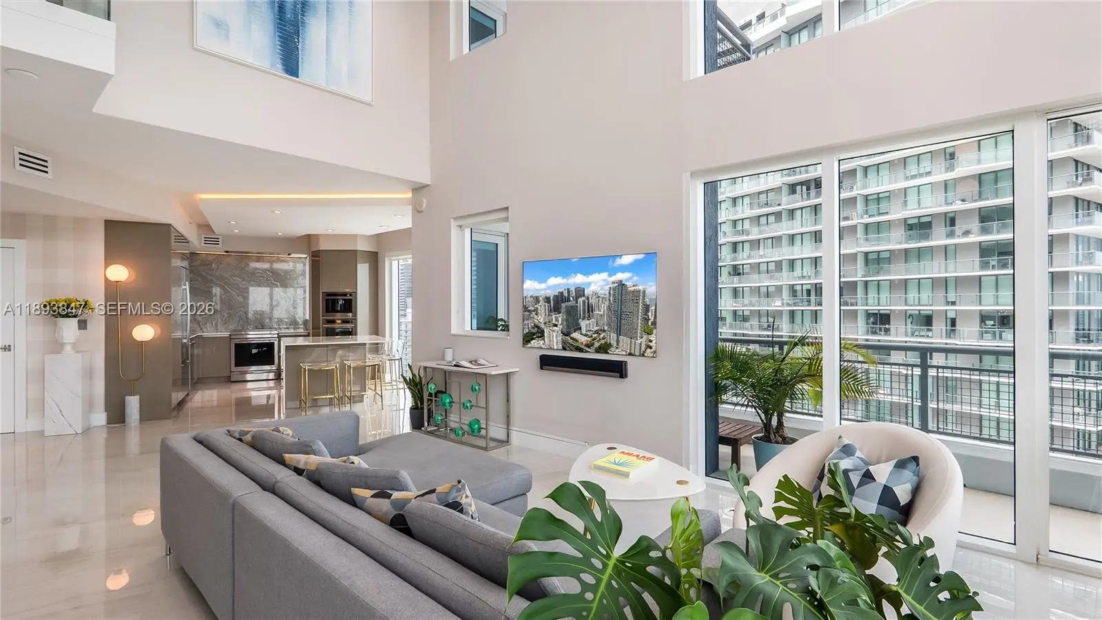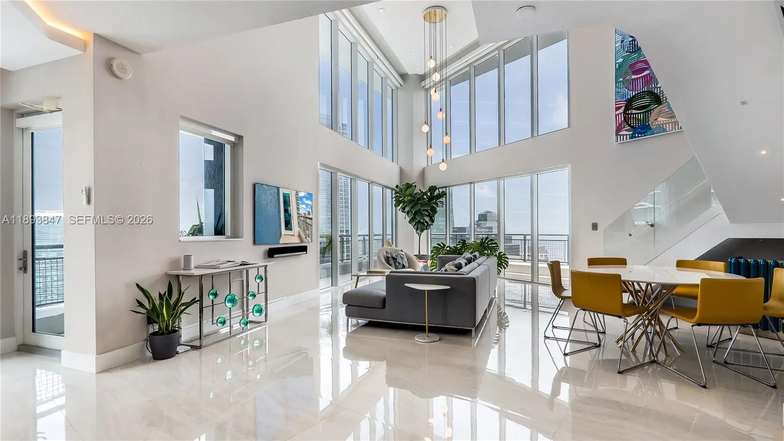 Experience sky-high living in this exquisitely remodeled 2-story duplex soaring above Brickell on the 42nd floor. Perched on the coveted SE corner, this sky villa delivers Bay, & South Brickell views through dramatic double-height glass walls that blur the boundary between indoors & sky. Reimagined with flawless modern design, it features a custom LED-lit floating staircase, designer textured walls & wallpaper, smart electronic shades, marble baths & marble-slab kitchen backsplash. Stunningly finished with upgraded automated lighting for a contemporary feel. Infinity Brickell offers resort-style living with pool, spa, fitness center, valet, 24/7 security, & exclusive rooftop access for floors 40+ — all steps from Brickell City Centre’s world-class dining, shopping, and entertainment.