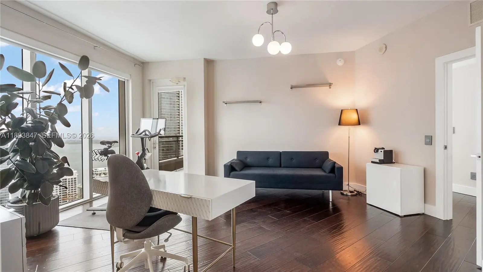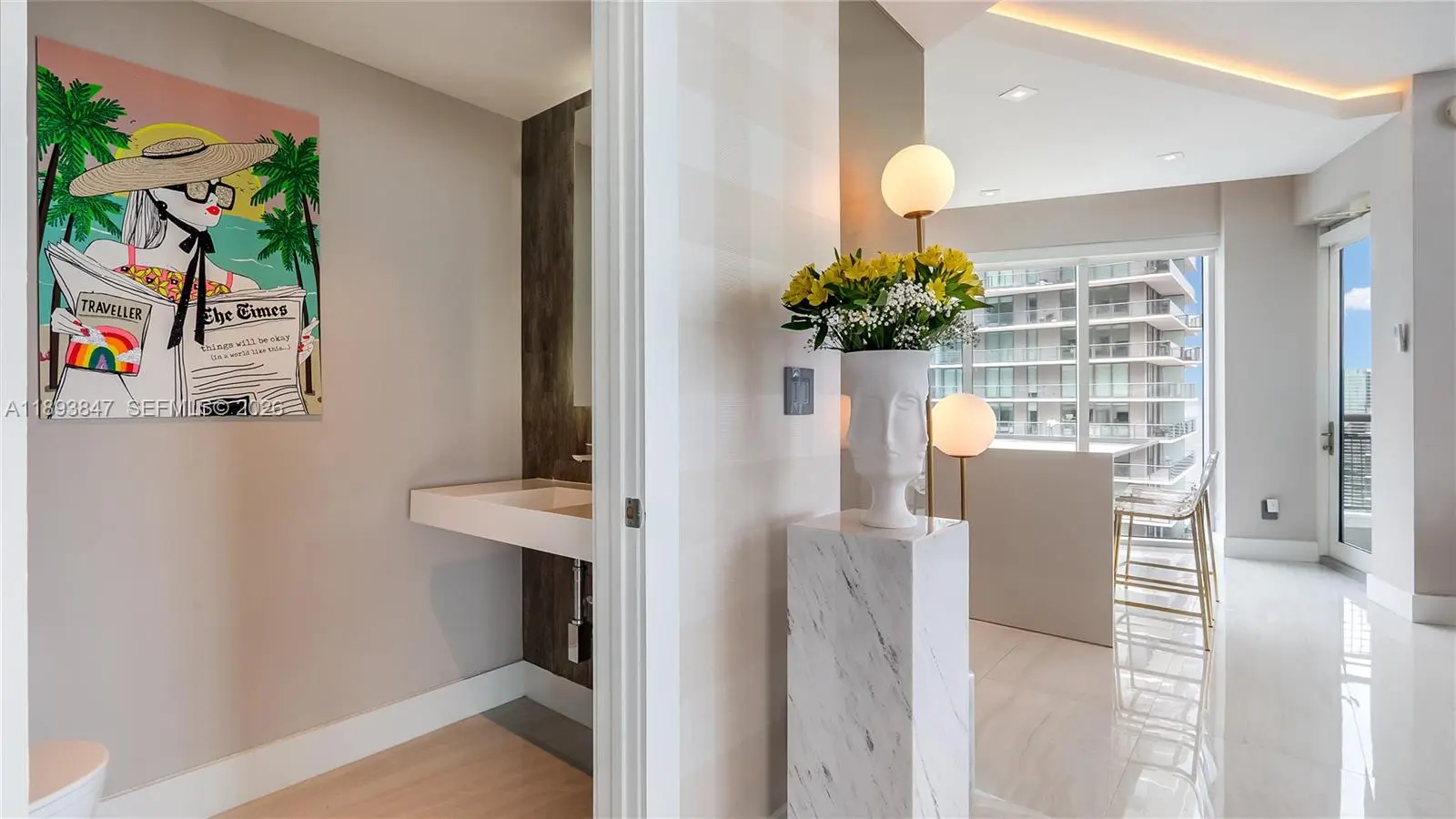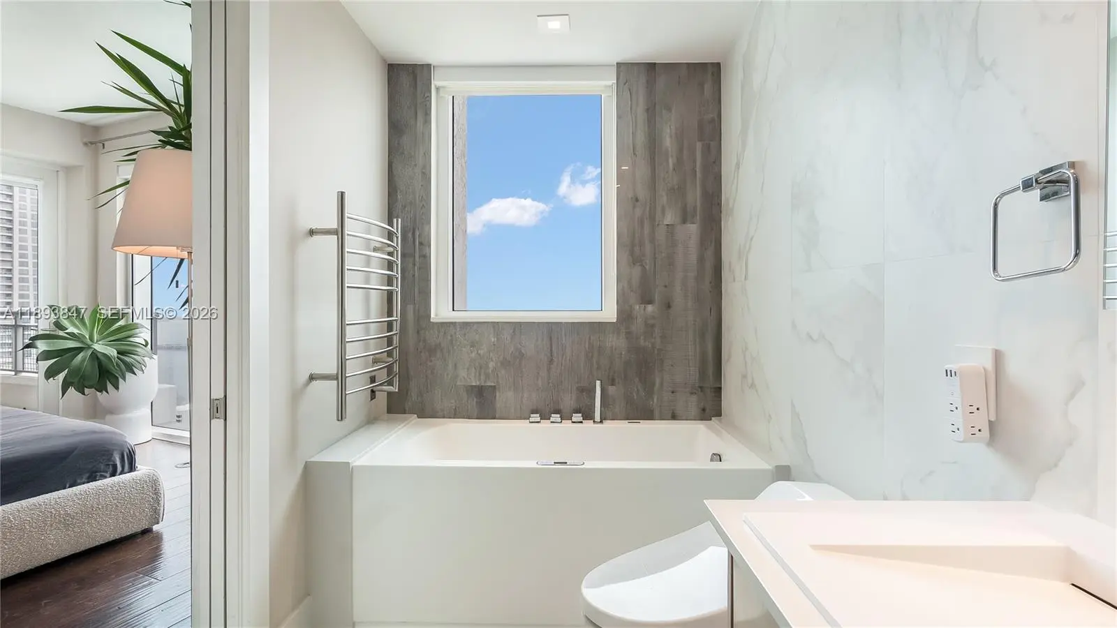Experience sky-high living in this exquisitely remodeled 2-story duplex soaring above Brickell on the 42nd floor. Perched on the coveted SE corner, this sky villa delivers Bay, & South Brickell views through dramatic double-height glass walls that blur the boundary between indoors & sky. Reimagined with flawless modern design, it features a custom LED-lit floating staircase, designer textured walls & wallpaper, smart electronic shades, marble baths & marble-slab kitchen backsplash. Stunningly finished with upgraded automated lighting for a contemporary feel. Infinity Brickell offers resort-style living with pool, spa, fitness center, valet, 24/7 security, & exclusive rooftop access for floors 40+ — all steps from Brickell City Centre’s world-class dining, shopping, and entertainment.