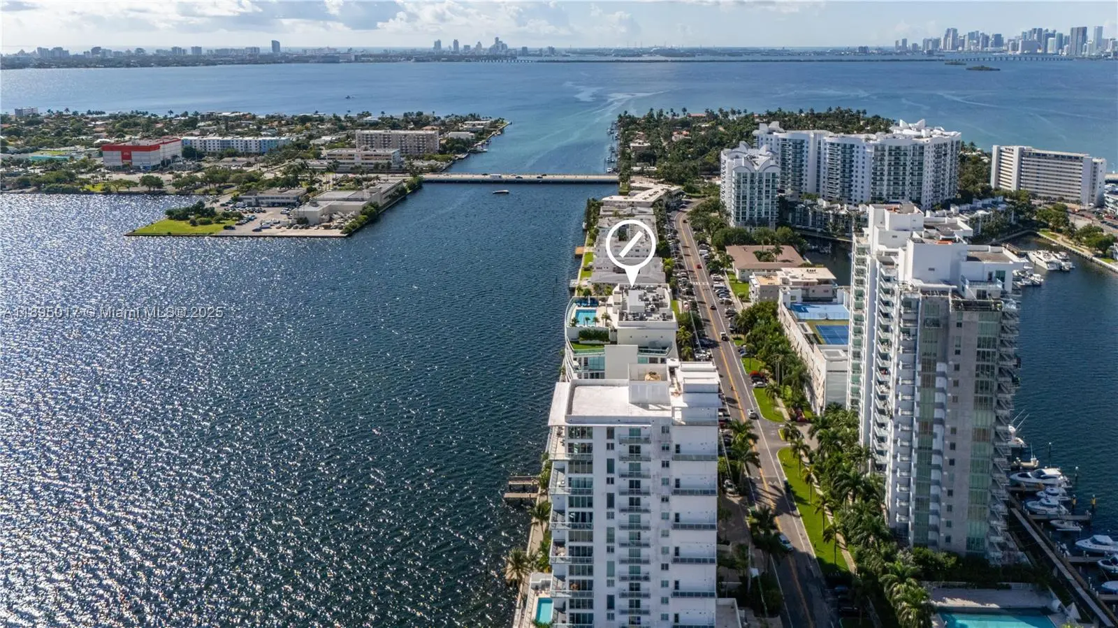 Experience luxury in this stunning 2-story flow-through at Cielo on the Bay, a boutique building with only 36 units. Elevator opens to your private foyer, revealing sunlit spaces with panoramic Biscayne Bay views from sunrise to sunset. Upstairs, two bedrooms with en-suite baths offer water vistas—wake up to shimmering bay views from your bed or shower. Enjoy rooftop pool, hot tub, gym, and community room with water views. Features include a private balcony, covered parking with EV charging, community boat dock, and access to the upcoming 9,000 sqft waterfront park, Island Walk. Pet-friendly, in North Bay Village, between Miami and Miami Beach, steps from fine dining and vibrant nightlife.