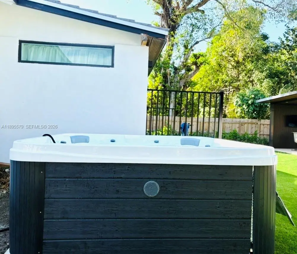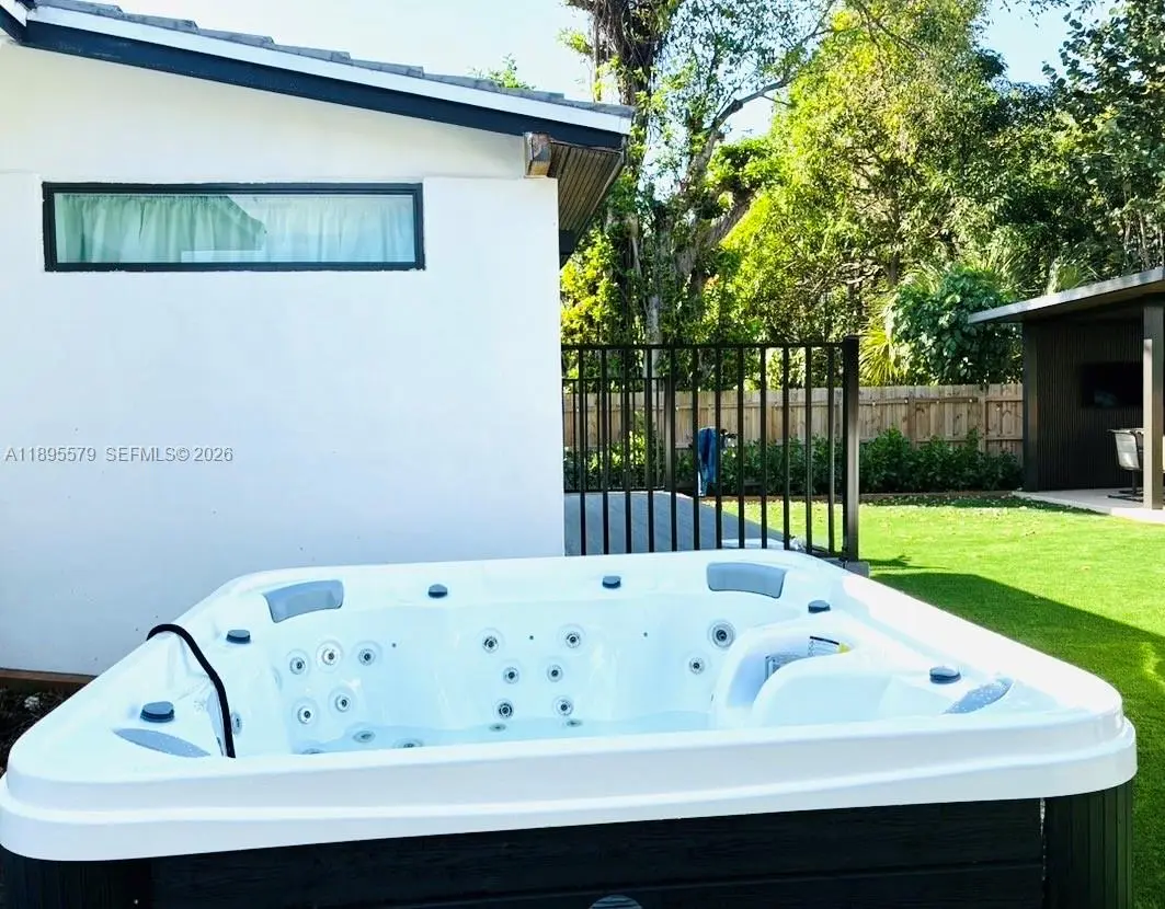 Located just two blocks from the Design District, this beautifully remodeled home sits on a spacious 7,475 sq.ft. lot. The exterior features lush Bermuda grass and podocarpus hedges for complete privacy. A modern driveway includes an electric vehicle charging station for added convenience. Inside, enjoy hurricane-impact windows and doors, a new barrel roof, new HVAC system, and a fully renovated kitchen with new cabinets, countertops, and appliances—plus a new washer and dryer. The fully fenced backyard is an entertainer’s dream, boasting a modern pergola with a built-in BBQ, refrigerator, sink and a brand new Jacuzzi. The yard is completely covered in high-quality turf, offering a versatile outdoor space perfect for gatherings and relaxation.