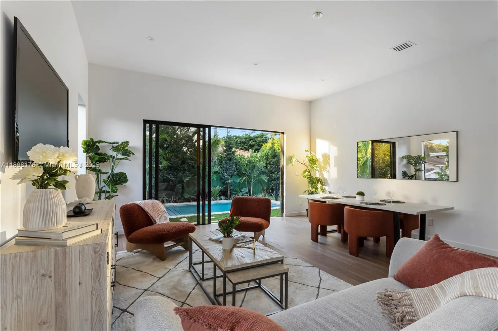Newly constructed, this modern residence is nestled in the highly sought-after Shenandoah neighborhood, just minutes from Brickell, Coral Gables, Coconut Grove, and Calle Ocho. Designed for both style and comfort, the home features a sophisticated open-concept layout with soaring ceilings and a bespoke Italian kitchen that anchors the living space. European oak floors run seamlessly throughout, while spa-inspired bathrooms showcase elegant porcelain finishes and frameless glass showers, creating a serene, refined atmosphere. Outside, a spacious fenced backyard with a brand-new pool sets the stage for effortless indoor-outdoor living and elegant entertaining.