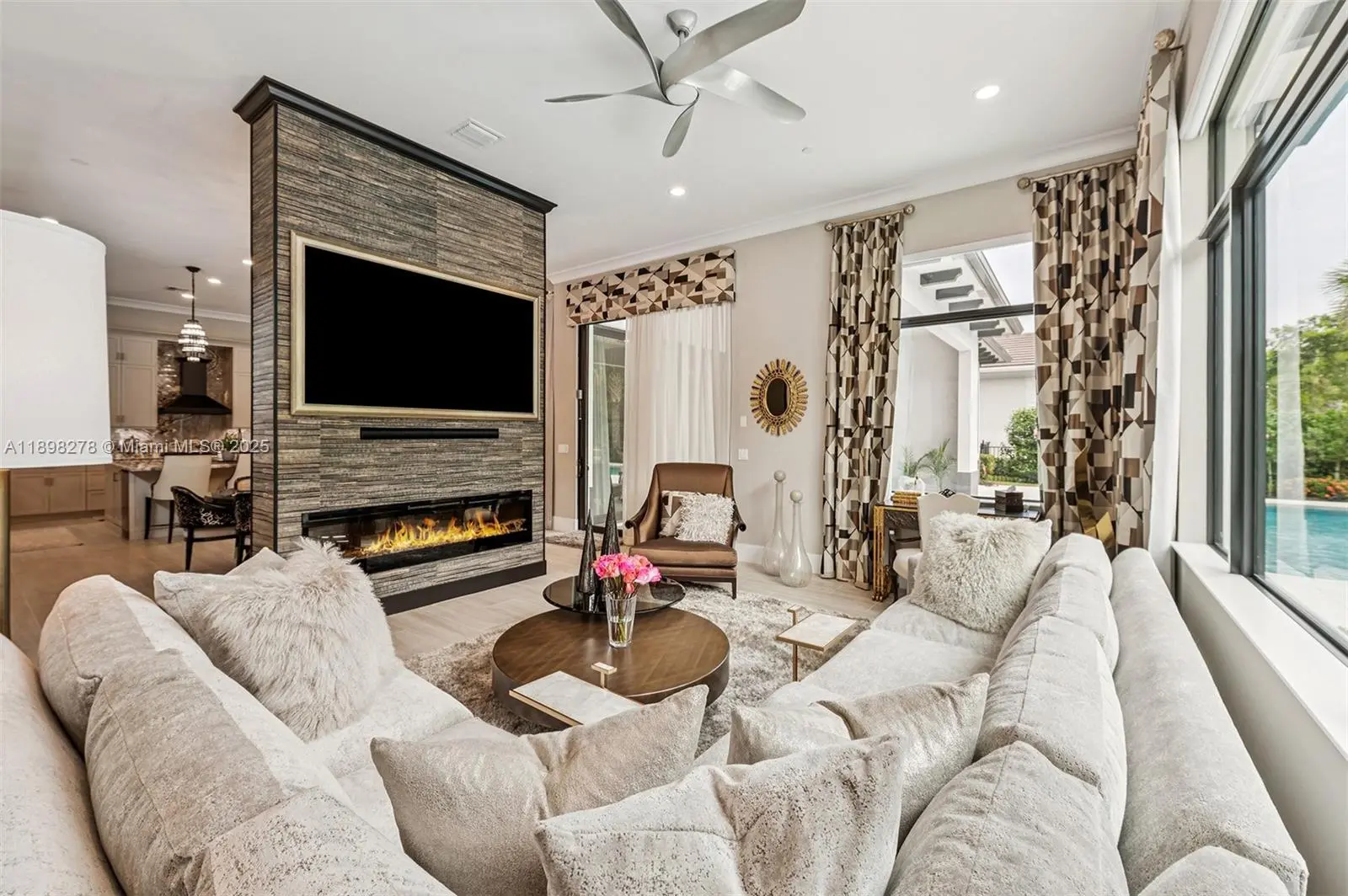 Perfectly situated in the sought-after Coral Isles enclave, this home has been transformed into a move-in-ready designer showcase offering 3BR/3.5BA and 3,920 SF of luxury. A private backyard oasis with lush landscaping and pool sets the tone for relaxed South Florida living. Inside, a grand foyer with marble inlay floors opens to a spacious great room featuring a dramatic custom wall with a double-sided electric fireplace and a gourmet kitchen with natural Quartzite countertops and backsplash. The wine room includes dual 155-bottle coolers and ample storage. Additional highlights include custom closets throughout, marble powder room, central vac, impact glass, and a whole-house generator—a rare turnkey opportunity in one of Palm Beach County’s most desirable new communities.