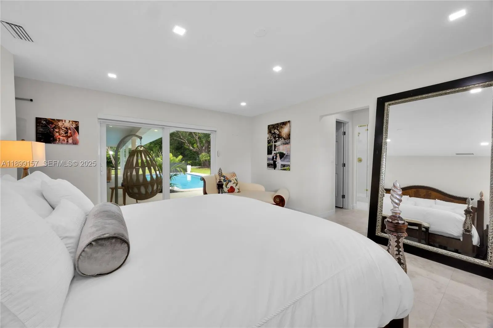 Nestled on over one acre of manicured grounds, this 5-bedroom, 4-bath home offers a rare blend of space, comfort, and resort-style amenities. Featuring a formal living, dining & family room w/ beautifully renovated kitchen and appliances. The primary suite features dual vanities & walk-in closets, while a private guest wing of living room, wet bar, and ensuite bedroom ensures ultimate privacy for visitors. Step outside to a large covered patio with bar overlooking the beautiful pool leading to the koi pond, fire-pit, tennis court, expansive lawn, and large storage shed. The home has an 8 yr roof and full impact rated doors & windows. Located in one of Miami’s most peaceful enclaves just moments from Palmer Trinity School, this estate offers the perfect balance of tranquility & elegance