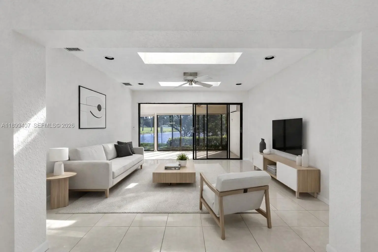 Enjoy a great Florida Lifestyle in this bright and spacious 3bed/2 bath corner villa located in an exclusive 55+ community. Golf membership is not mandatory, pet friendly. Relax in the large Florida Room overlooking the gorgeous lake and golf course. This villa has it all. Brand new gourmet kitchen with exquisite quartz countertops and top of the line cabinets, brand new SS appliances, freshly painted, update bathrooms and no carpet. Skylights, high ceilings, lots of closet space, one car garage with private driveway. Community features clubhouse with pool and card room, well manicured landscape. Close to shopping, restaurants, highways, beach. HOA covers landscaping, new roof (2023), exterior painting, pest control, Guard gate, basic cable, internet, pool club house, common areas.