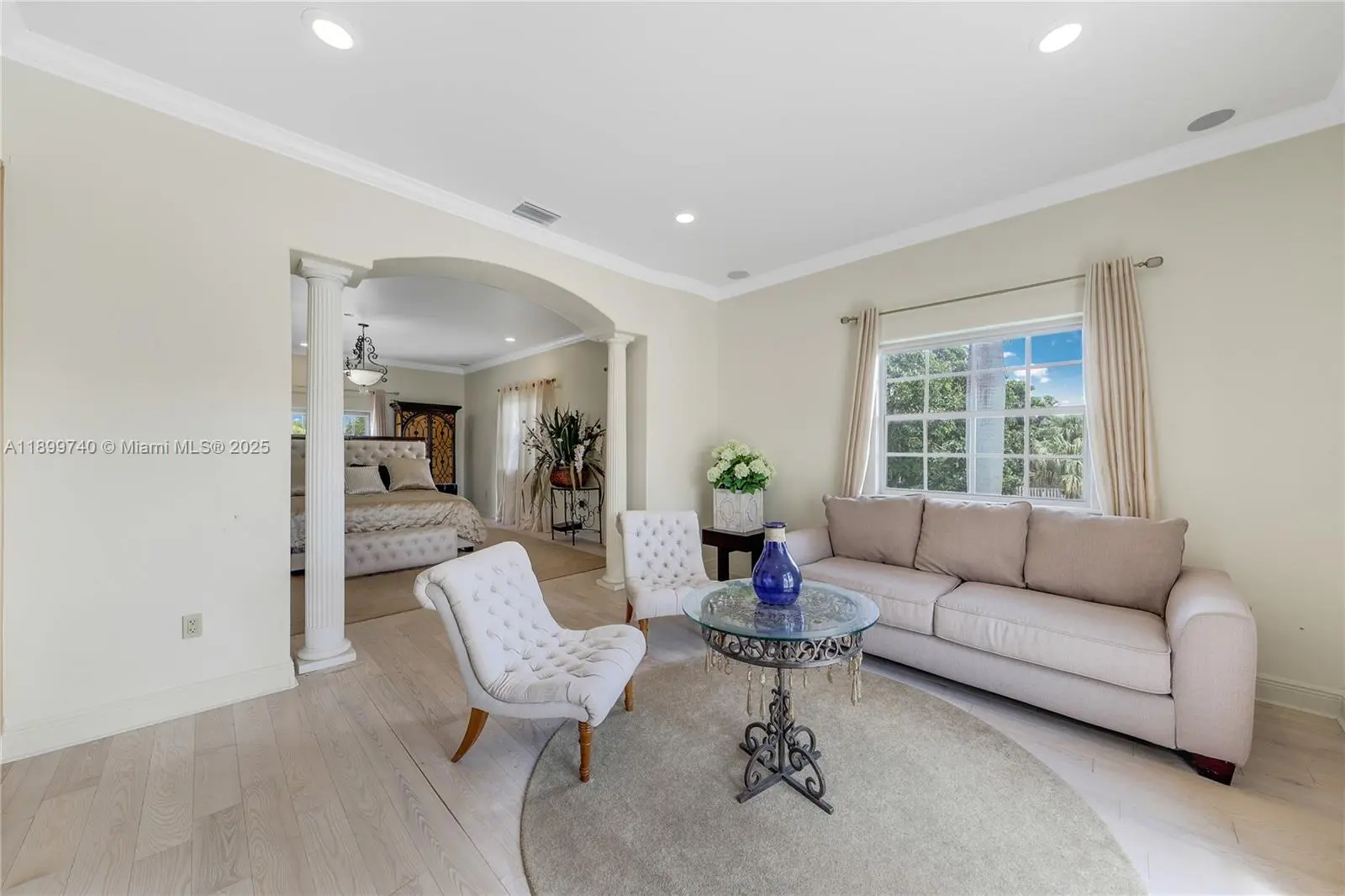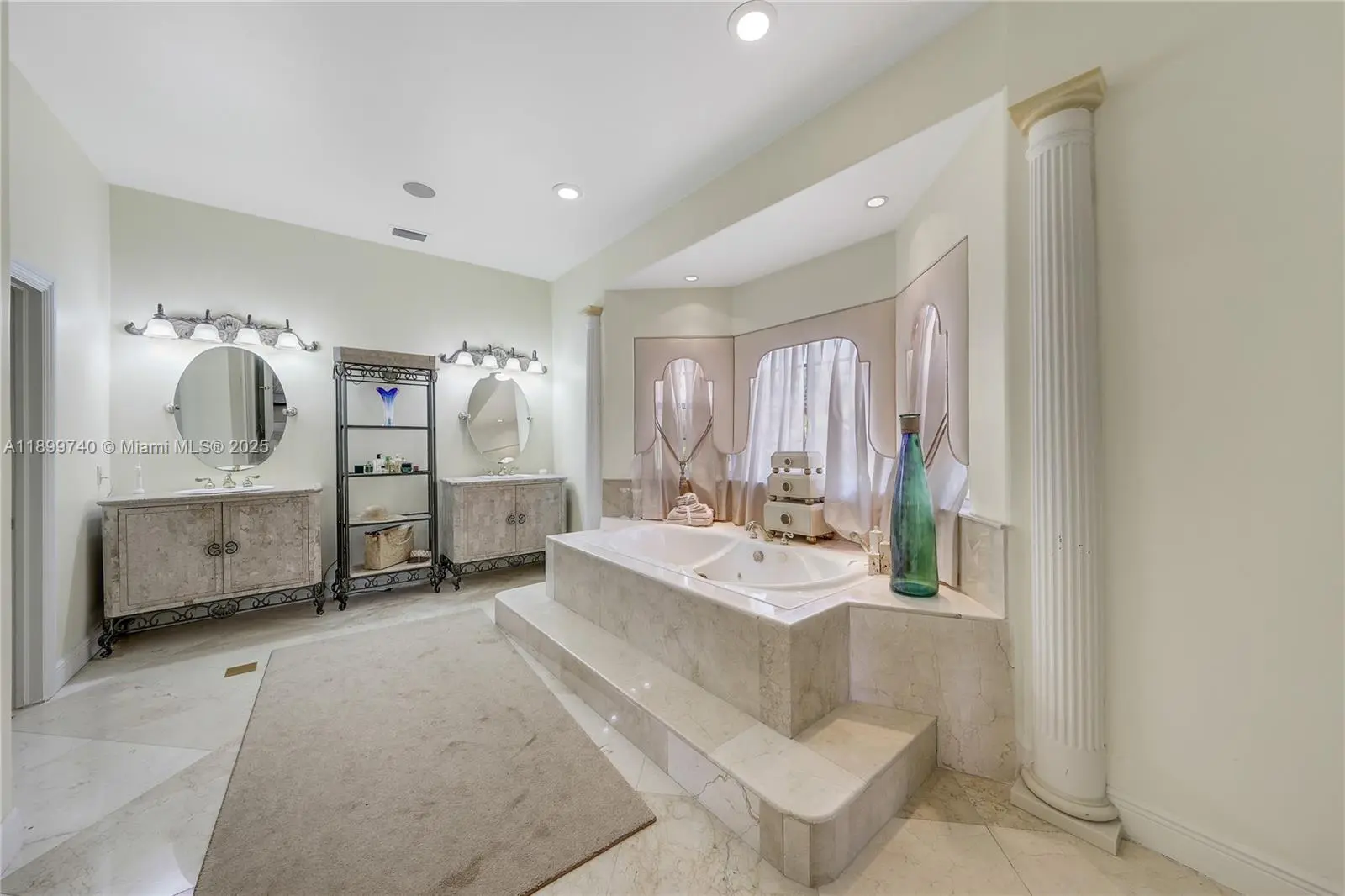 Privately positioned at the end of a cul de sac, this custom built estate invites you to live expansively with over 6,000 SF between the main home and private guest house. From its soaring ceilings to hand-selected marble flooring, every detail was thoughtfully curated to offer timeless elegance and functionality. The chef’s kitchen features solid wood cabinetry, granite countertops, and propane gas appliances. Outdoor spaces flow effortlessly. A 15x30 heated pool, jacuzzi, covered terrace, half basketball court, and 8 car motor court. Concrete perimeter wall ensures privacy. No HOA. This is a rare blend of craftsmanship, space, and lifestyle designed for those who value privacy, comfort, and sophistication.