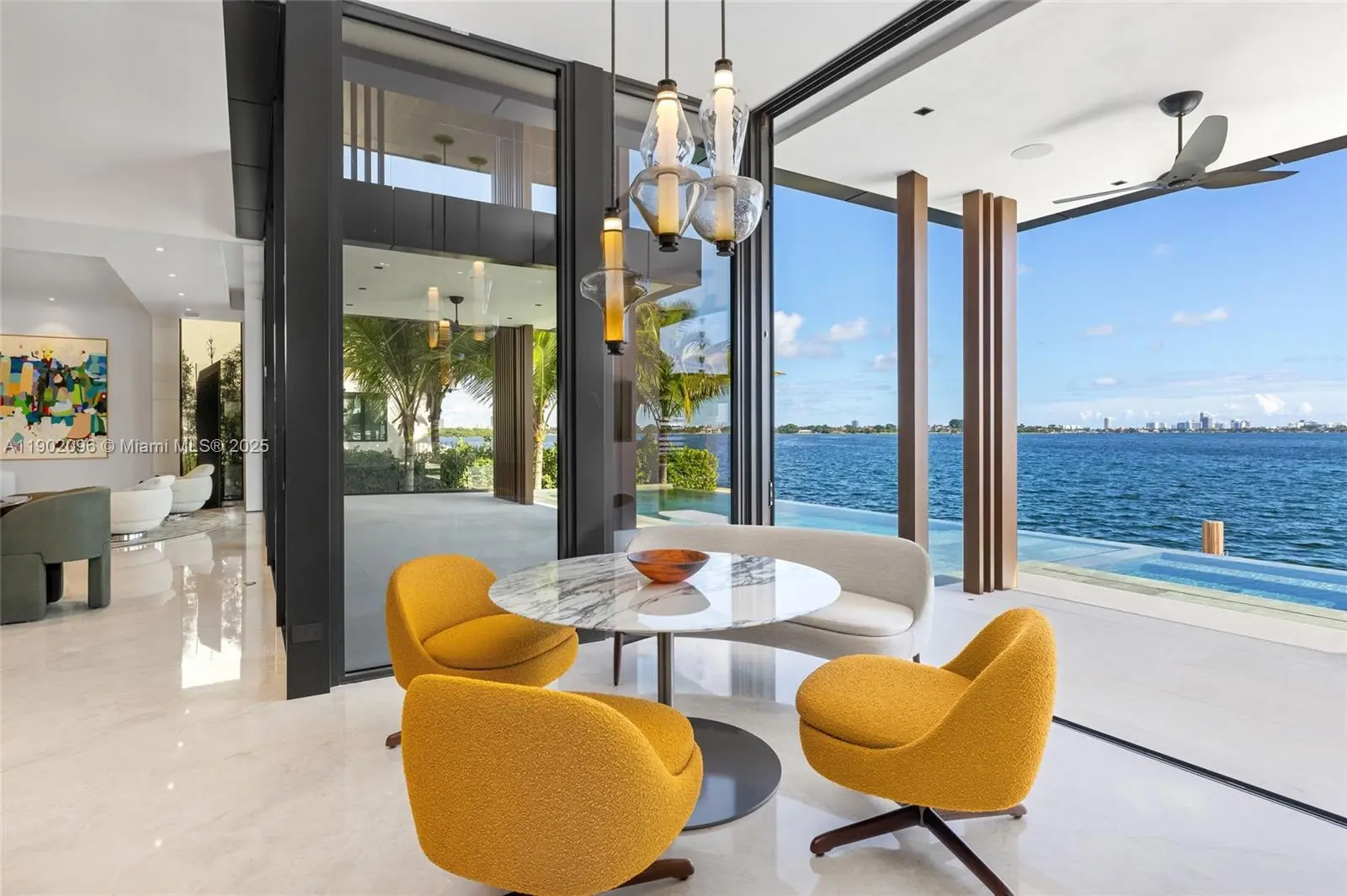 Experience uncompromising luxury in this newly completed tropical modern estate, set within the exclusive guard-gated enclave of Sans Souci Estates. Developed by Sunlight Homes and designed by Preschel Bassan Studio, this 8,000 SF residence offers 7 bedrooms including staff quarters, 7 full and 2 half baths. A stone façade opens to interiors with a chef’s and butler’s kitchen, custom millwork, imported stone, and European oak flooring. Features include a wine room, high ceilings, elevator, and 3-car garage. Outdoors, 108 feet of water frontage with new seawall and dock showcase bay views and downtown sunsets. Furnished by Minotti, Baxter, and other iconic brands, this is a rare modern masterpiece moments from world-class shopping, dining, and coastal attractions.