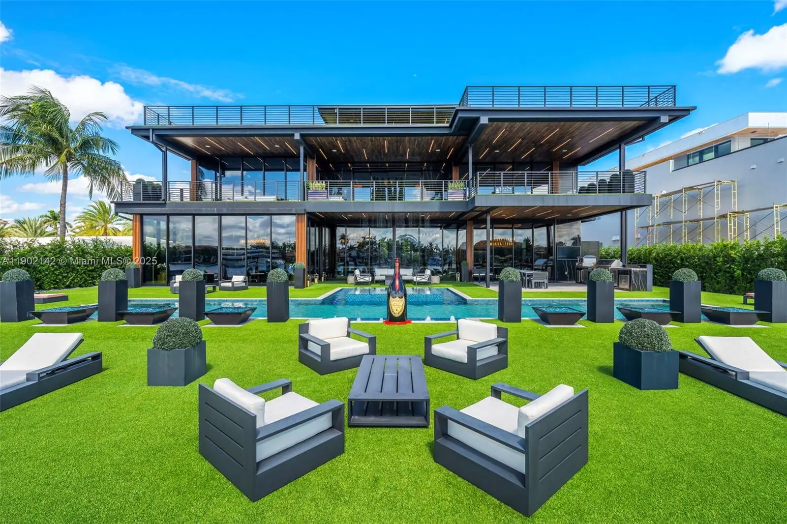 Welcome to 733 Middle River Drive in the gated community of Middle River. Designed and built by Prestige Design Inc, the creators of some of South Florida’s most iconic trophy homes, this newly completed estate spans nearly 12,000 sq ft under air and over 22,000 sq ft of total living space. Built entirely of concrete and finished with rare stones, exotic woods, and custom cladding, the home defines modern craftsmanship. The chef’s kitchen showcases backlit onyx and meticulous detailing throughout. With 108 feet on the water, a variance for an extended dock, and a full-length lap pool, it captures the essence of the yacht capital of the world. Every room is oversized, including a dream primary suite and a grand home cinema. Every inch of this home is an experience.