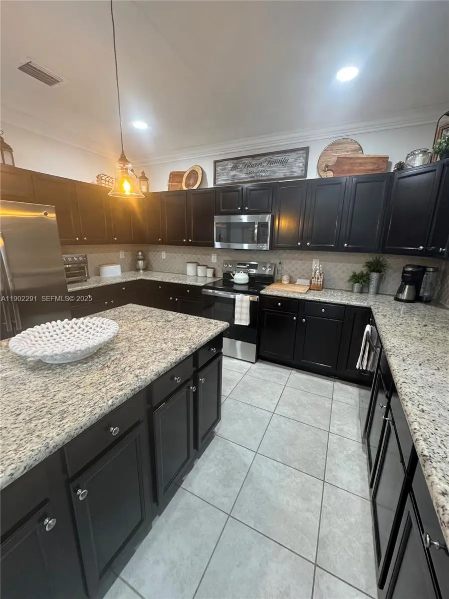 Beautiful & spacious single-family home in a sought-after neighborhood! Smart, open layout w/ tile floors downstairs & laminate upstairs. Upstairs offers 5 rooms- 4 bedrooms + a versatile flex room- 2 full baths, master w/ his & hers closets, washer/dryer & a linen closet for added convenience. Downstairs features a full living room, formal dining room, & Florida room w/ a sunlit dining area, + a kitchen with granite countertops, stainless steel appliances, a full cabana bath w/ yard access, storage, & a 2-car garage. Enjoy a private fenced backyard covered patio & pool- pool & garden maintenance included! Live in a resort-style community w/ an infinity pool, splash zone, sauna, gym, playground, security, top-rated Kendall Square K-8 Center & more. Move-in ready w/ 1st month & 1 deposit.