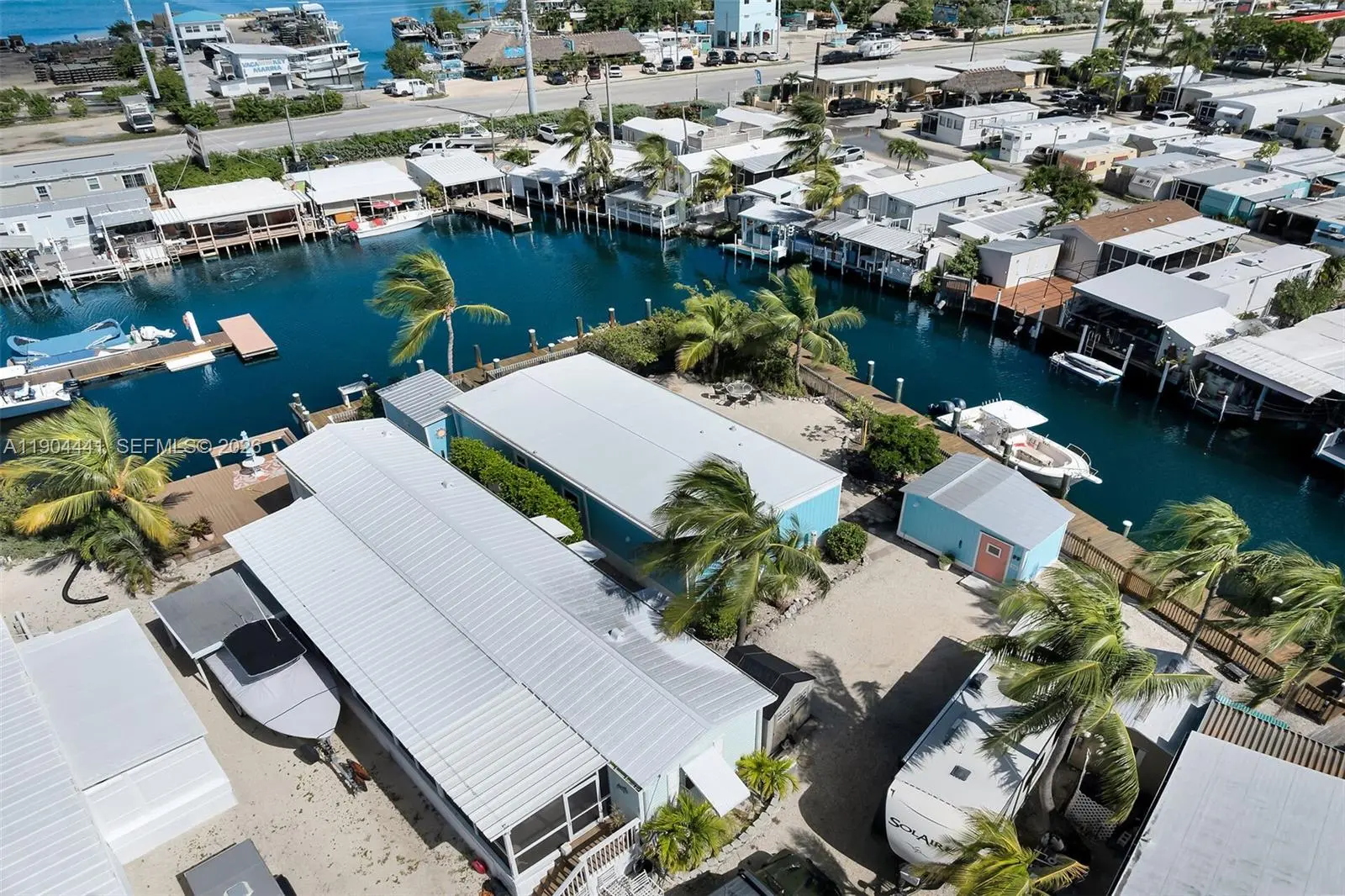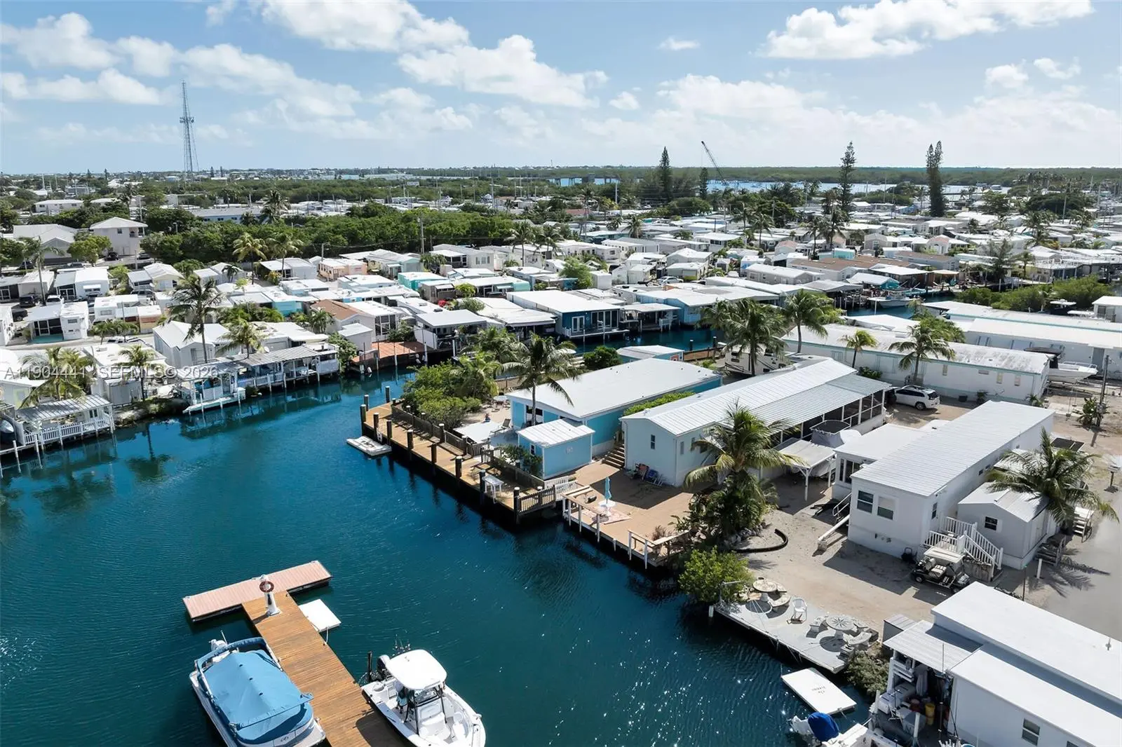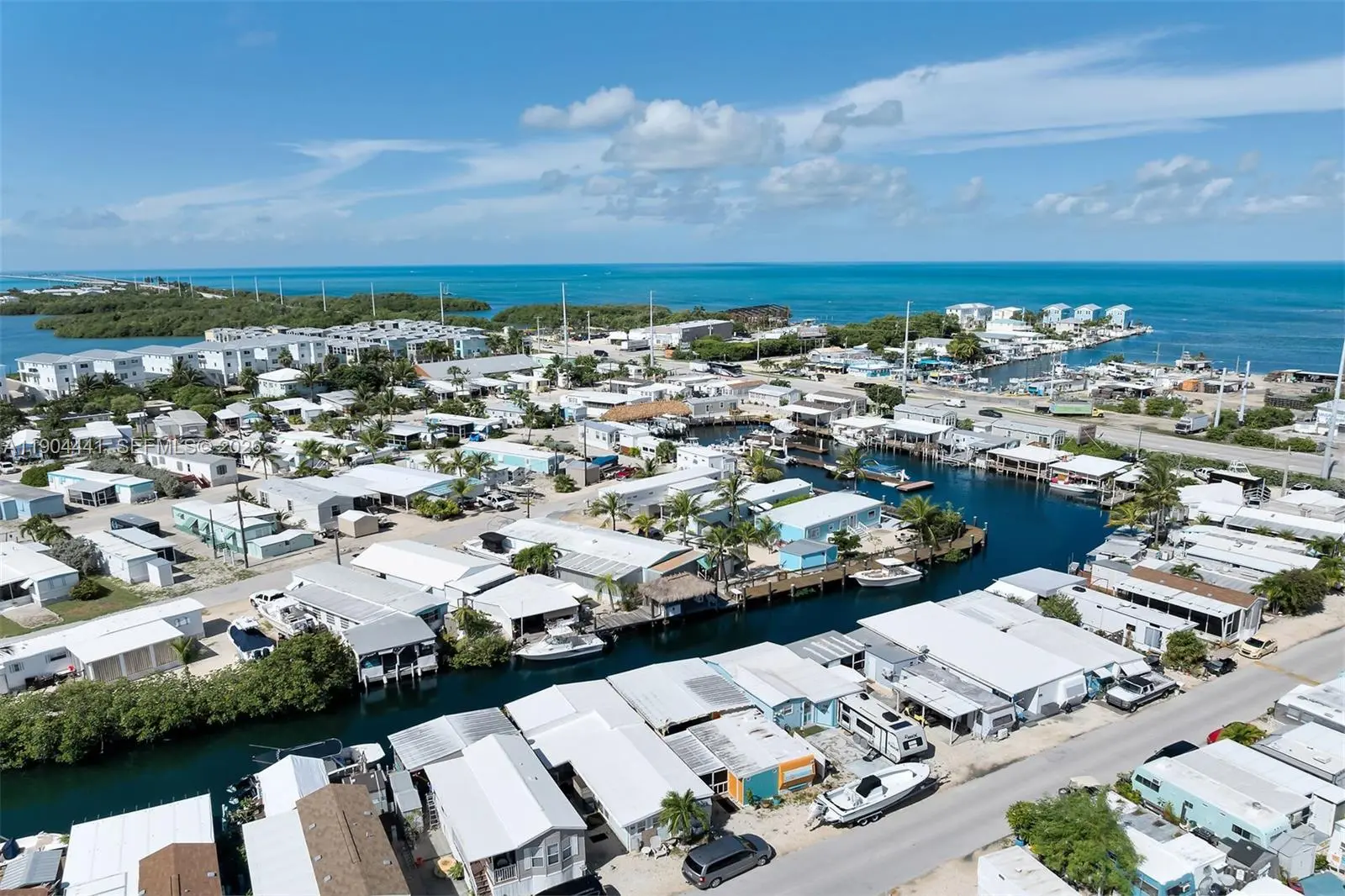 Seller will pay the first year of lot rent! Remodeled, furnished 2BR/2BA mobile home with marina/canal views to Boot Key Harbor. Open plan; kitchen with 8-ft island, double fridges, glass-top range, dishwasher, disposal and pantry. Primary suite with private bath, walk-in and laundry. Water-view family room, private corner lot with ample parking. Two sheds, including a dockside shed with commercial ice maker, fridge and bait freezer. Galway Bay MHP (55+): gated, pet-friendly, private boat ramp, deep canal access, trailer parking, trash service. Lot rent $1,505/mo incl. taxes. Near 7-Mile Bridge; ~45 min to Key West.