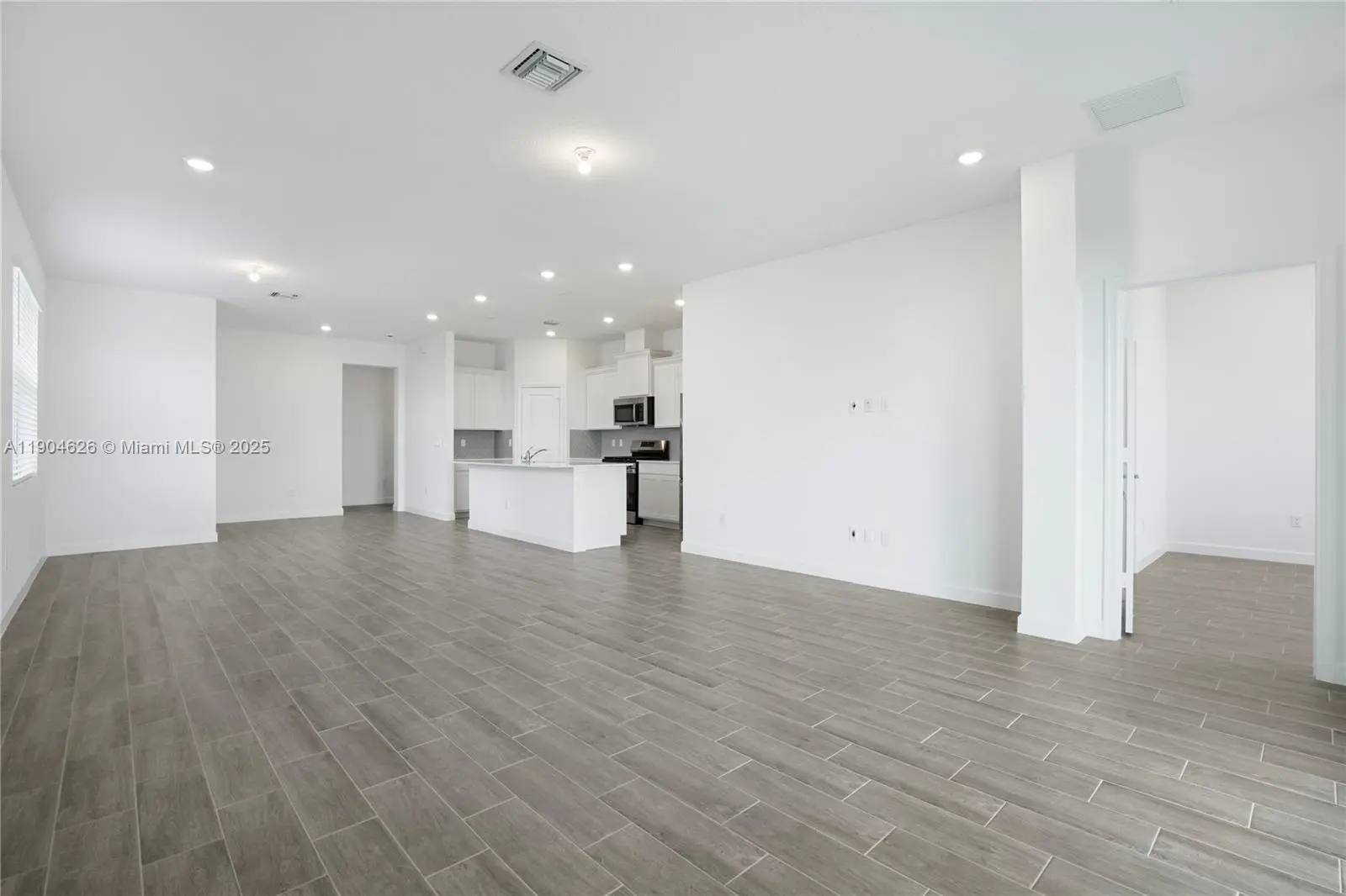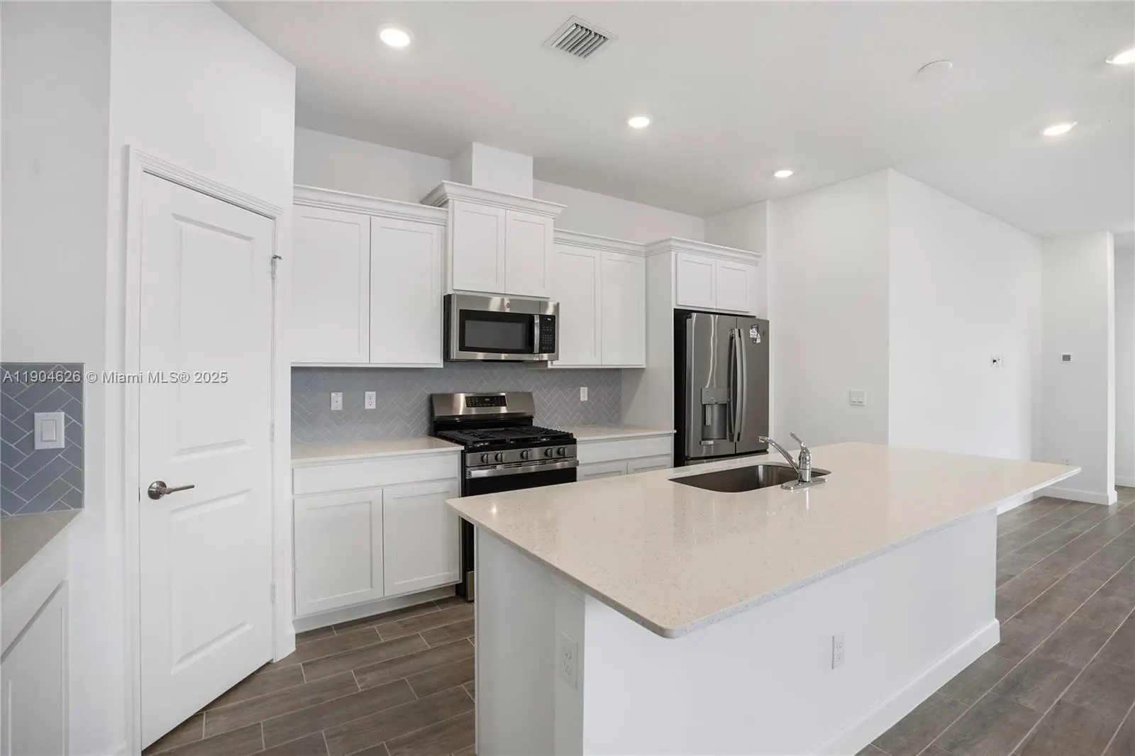 This modern 3-bedroom, 2-bath home offers comfort and style with an open layout, elegant tile floors, and abundant natural light. The kitchen features quartz countertops, stainless steel appliances, a large island, and herringbone backsplash. The primary suite includes a walk-in closet and dual vanity bath with glass shower. Enjoy a spacious 2-car garage, full laundry room with washer and dryer, and private driveway. Located in a quiet new community near major highways, schools, shops, and parks. Move-in ready and perfect for those seeking a bright, low-maintenance home with modern finishes, energy-efficient systems, and exceptional living in a peaceful neighborhood.