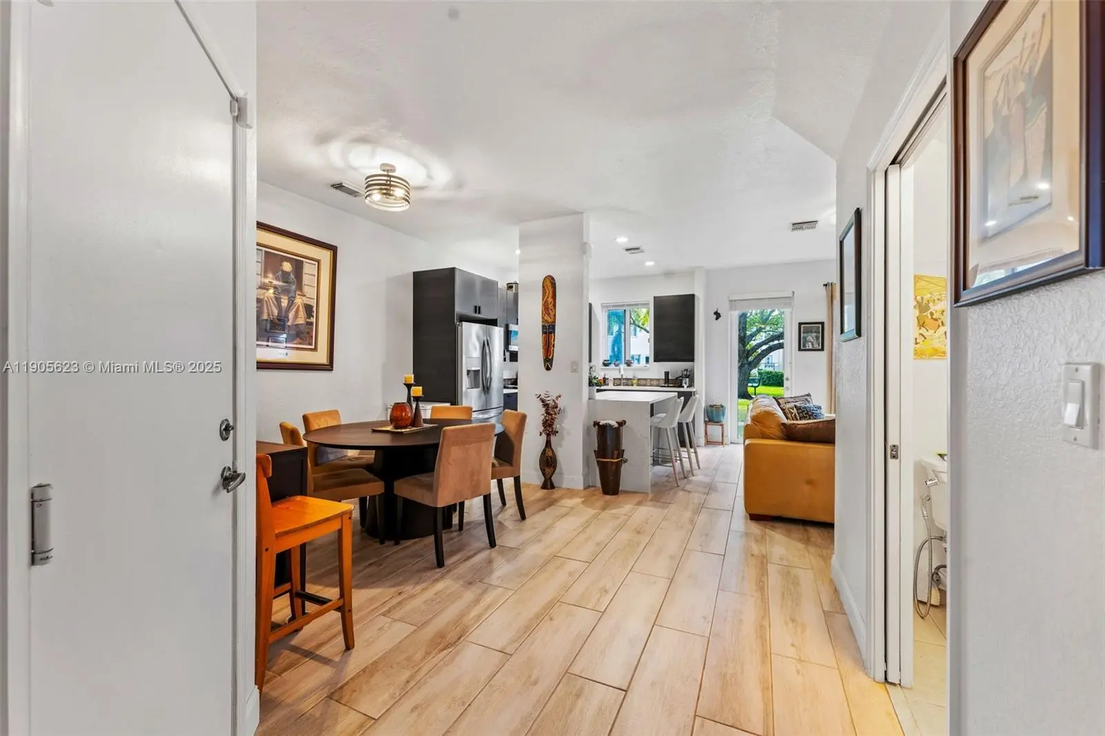 Step into this fully renovated 3-bedroom, 2.5-bath townhome perfectly positioned just minutes from Hard Rock Stadium and major highways. Designed for modern living, this home features an open-concept layout, quartz countertops, custom cabinetry, and sleek stainless steel appliances. Every space has been upgraded with intention—from the spa-inspired bathrooms with premium finishes to the immaculate details throughout. Enjoy the convenience of a private one-car garage, low HOA fees, and no rental restrictions—ideal for both homeowners and investors. With only one meticulous owner, this residence shines in both style and condition.