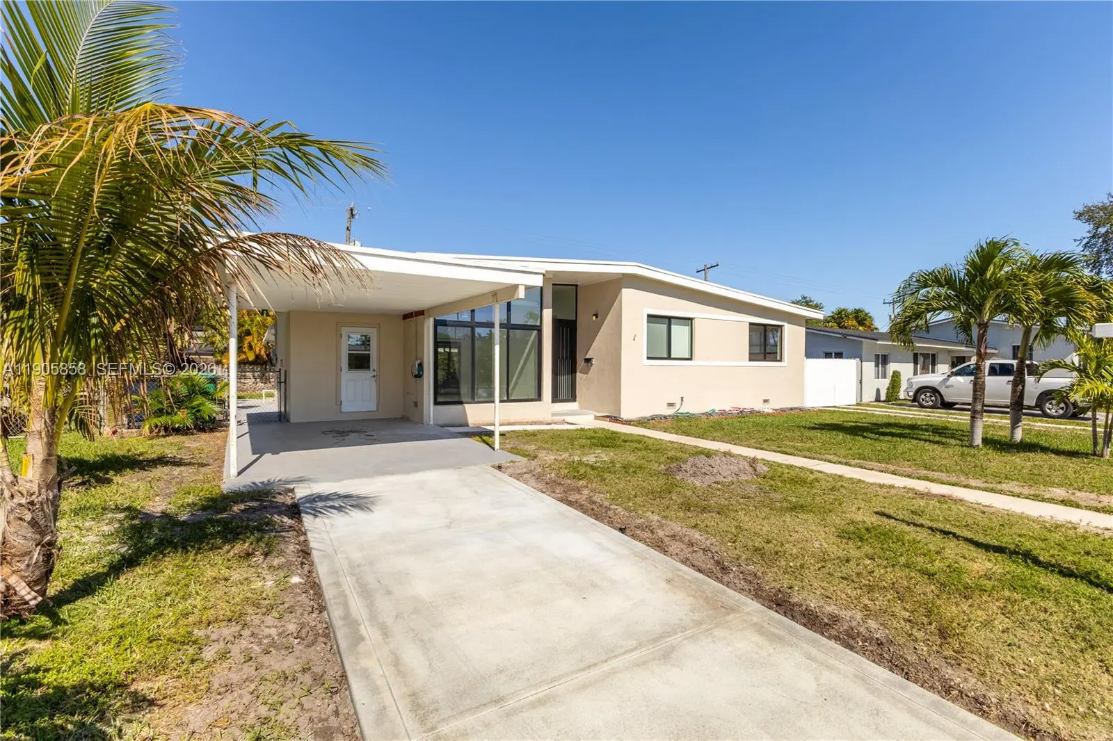 Updated single-family home in sought after neighborhood. 3 bedroom, 2 full bathroom w/spacious living room w/high ceilings & large screened back porch. New landscaping in process to accompany the newly installed well water sprinkler system. New tile floors in the living room and refinished wood floors in bedrooms just completed. Extra parking includes space behind gate for boat or truck parking. Updated kitchen w/granite countertops & new stainless steel appliances: french door fridge, gas range, microwave & dishwasher. Great utility room with full sized washer & dryer & storage. New central air conditioning. New Impact windows & doors w/modern blinds including motorized in living room. Oversized landscaped & fenced yard- pets welcome. In beautiful picturesque neighborhood with sidewalks, walking distance to fantastic shops & restaurants, public transportation, & the best schools.