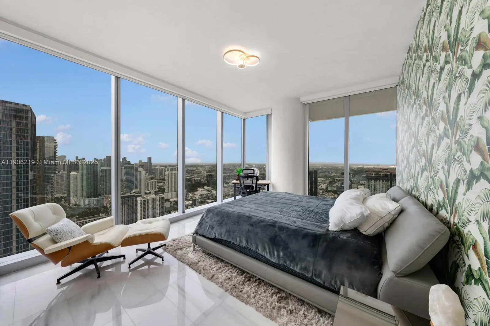 The only move-in ready 03-line at Missoni Baia! This stunning 4-bedroom + family room, 6-bath residence offers floor-to-ceiling glass on all sides, filling the home with natural light and showcasing breathtaking bay, ocean, and skyline views. The living room is surrounded by windows, creating a bright, airy ambiance that seamlessly connects to two large patios overlooking the water. Features include a private elevator entry, high ceilings, built-out closets, designer window treatments, and top-of-the-line WOLF & Sub-Zero appliances. Residents enjoy a hotel-style lifestyle with two pools, a tennis court, valet parking, spa, and fitness center—all with the unmistakable Missoni touch and a seamless blend of comfort, elegance, and resort-style living every day.