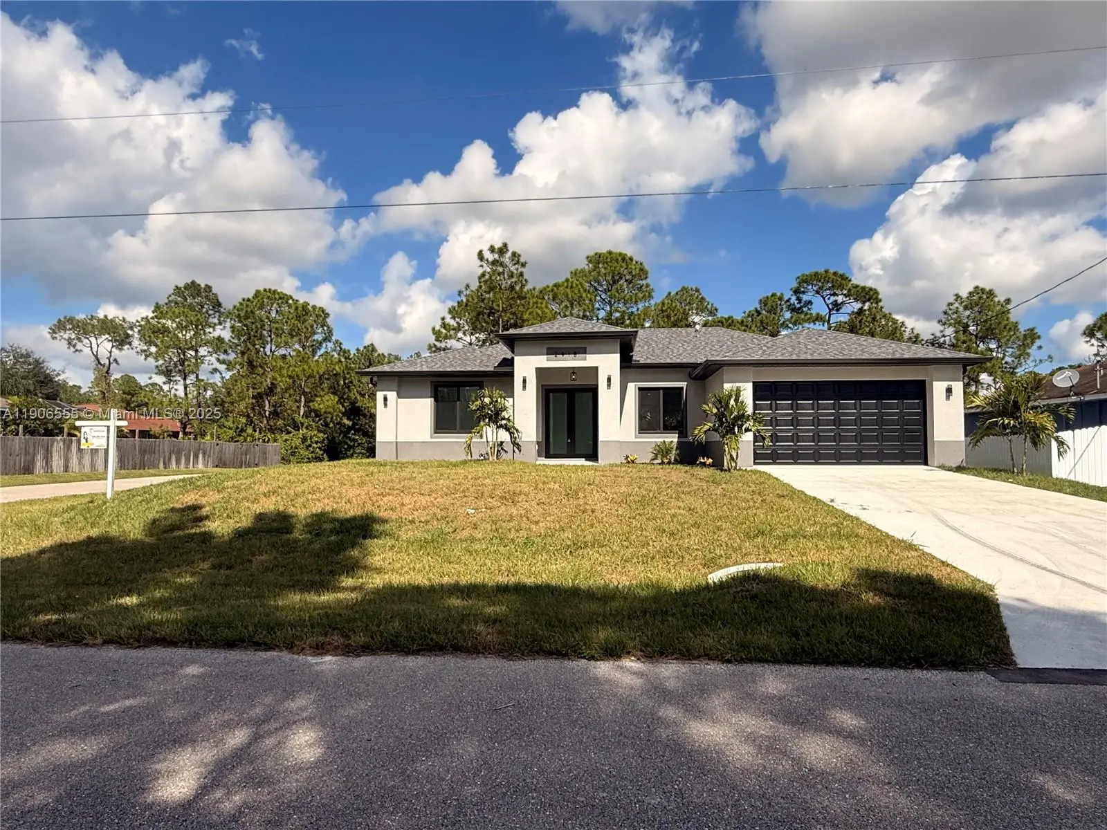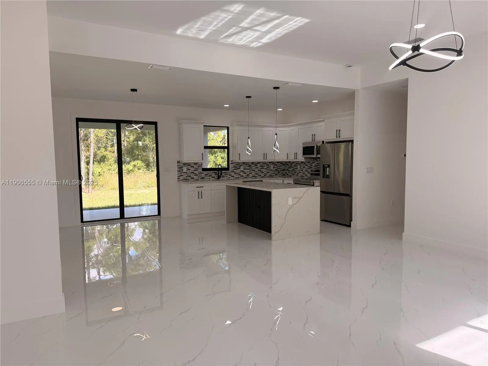 NEW CONSTRUCTION move-in ready home with many luxury upgrades at an affordable price! This home is truly stunning and feels grand! Spacious single family property features 3 bedrooms and 3 bathrooms with double primary bedrooms, open concept, 10-11 feet volume ceilings, impact windows, white tile flooring all throughout the home, all new top of the line Samsung appliances, beautiful waterfall island with quartz countertops in the kitchen and the same one in the bathroom vanities, double car completely finished garage with epoxy, tile in the front and back patio, glass door showers in all bathrooms, upgraded electric meter for future pool, gutters, two side entrances and plenty of driveway space with the possibility of a second driveway on the side of the house. NO HOA on .25 acre.