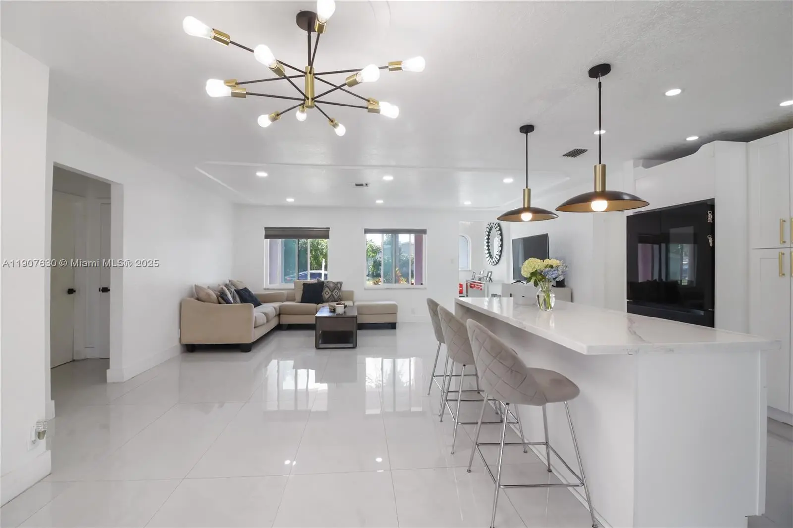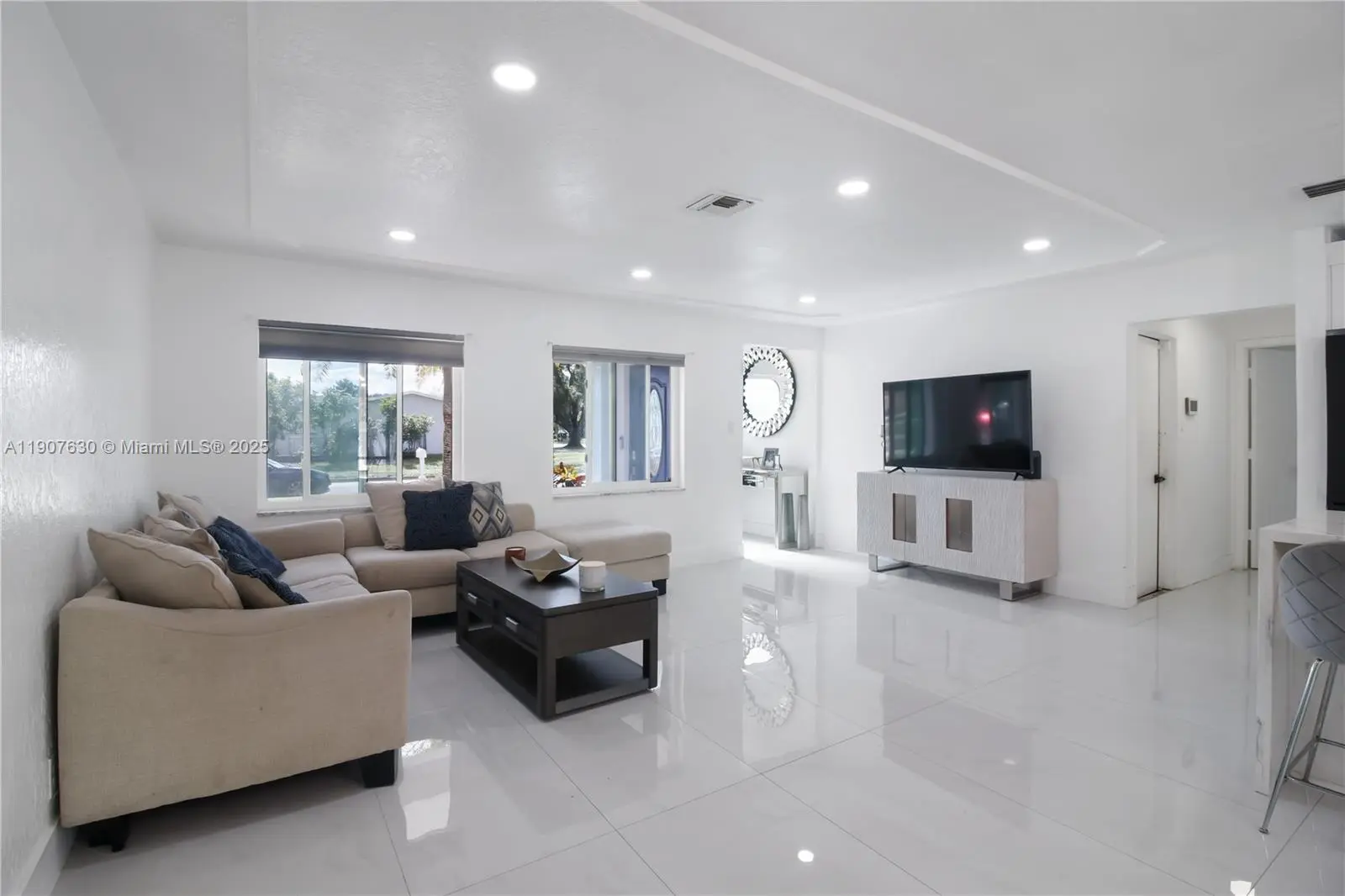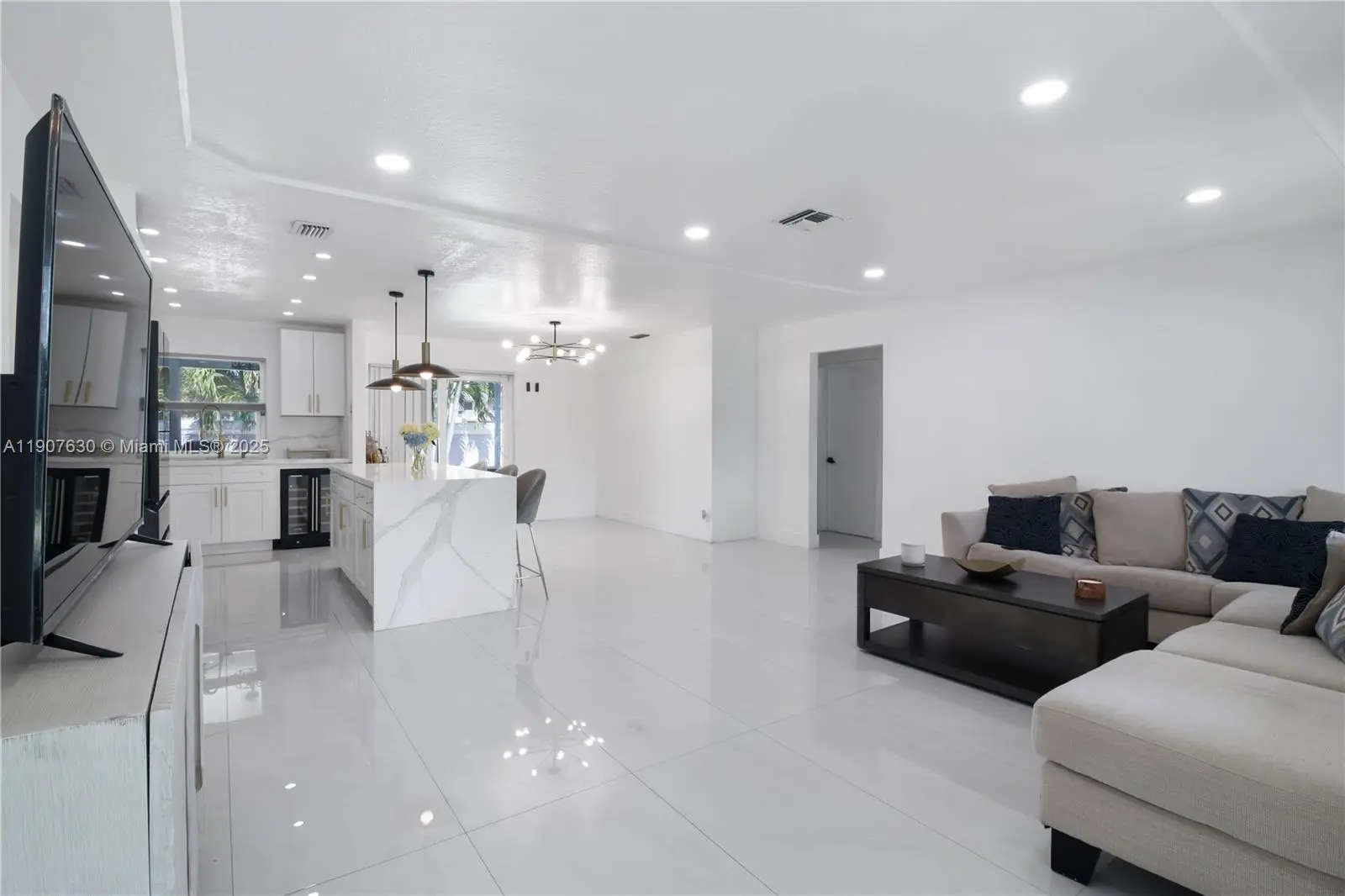 Beautifully remodeled 3-bedroom, 2-bath with pool home in Margate featuring a new A/C (2023), and brand-new flooring throughout. The modern kitchen offers a waterfall island, built-in wine cooler, smart refrigerator, and a dine-in layout filled with natural light. Enjoy impact windows and sliding doors, a 2-car garage with automatic door, washer/dryer, extra storage room or office, and two storage sheds. The covered patio overlooks a 9-ft deep saltwater pool with diving board. Fully fenced for privacy, perfect for relaxing or entertaining. Quiet neighborhood with sidewalks. Right off Atlantic Blvd, convenient to shopping, schools, Coral Square Mall, Riverside Park/Marina, and major highways. No HOA!