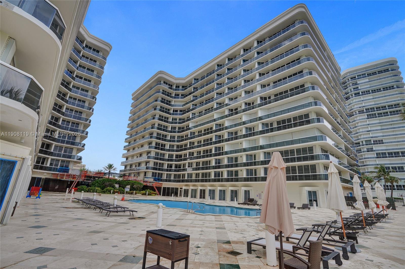 Solimar Fully-furnished Seasonal 1 bedroom plus den & 2 bathroom oceanfront condo for lease. Beachfront, full-service resort style building located in the heart of Surfside. Prime & ideal location, adjacent to place of worship, Bal Harbour Shops, restaurants and groceries stores. Unit offers private elevator foyer entry, tile flooring throughout, marble bathrooms, large kitchen, spacious balcony & tastefully furnished. Amenities include beach service, fitness center, sauna, steam room, valet & 24-hour security. Please see virtual tour. No ocean views from this unit. Pool is currently under construction - beach service is available.