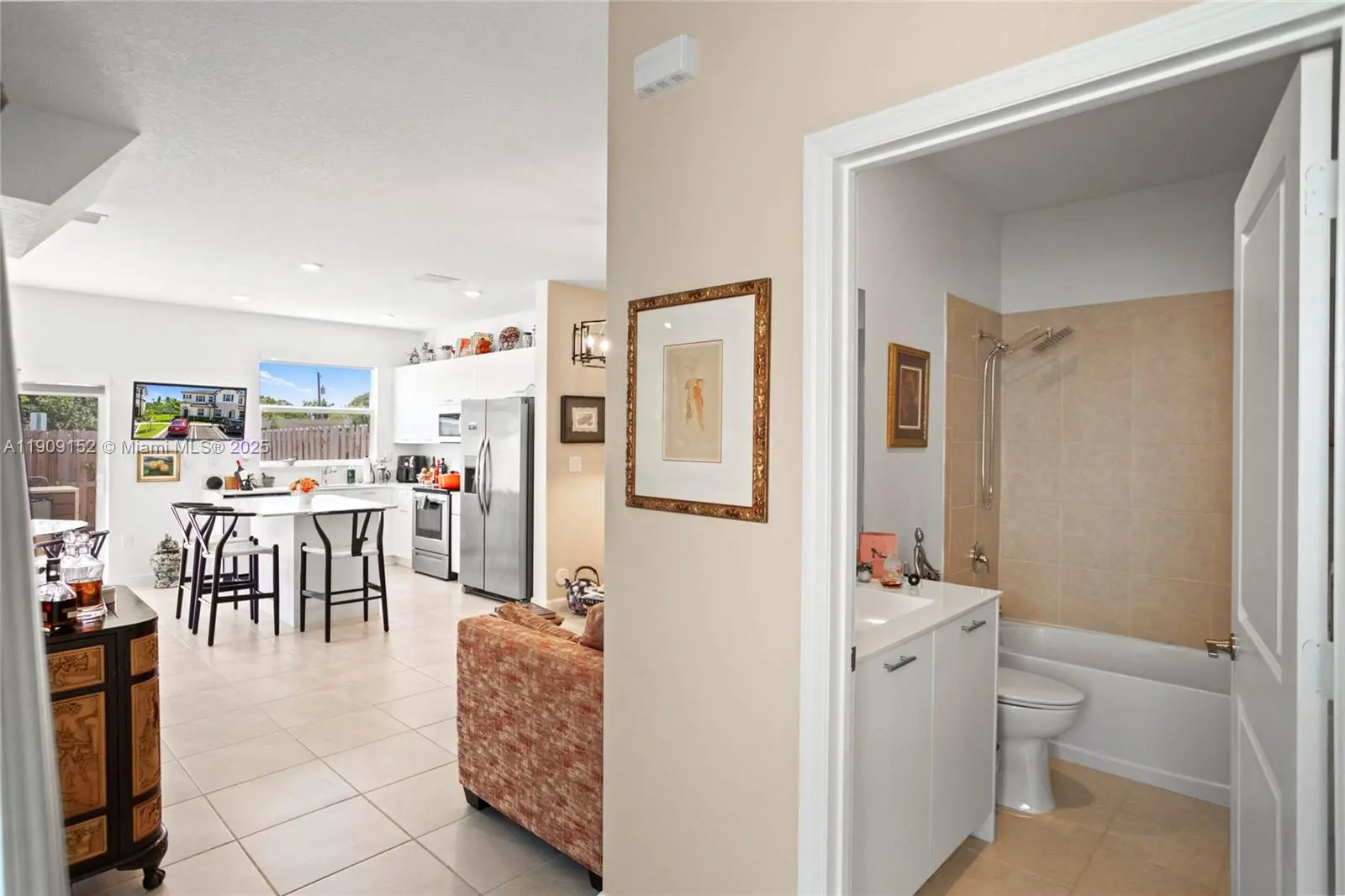 Impeccably maintained 2-year-old home in the gated Westview community, just 1.8 miles west of I-95. This 3-bedroom, 3-bath residence features a first-floor bedroom/office, elegant tile flooring, and custom blinds. Upstairs, enjoy two spacious bedrooms with full baths, including an Owner’s Suite with double vanity and walk-in shower. Custom closets throughout maximize storage and organization. Entertain in style with a private backyard oasis featuring a built-in outdoor kitchen with grill, fryer, sink, and fridge. Modern finishes, LVP wood-grain stairs, and thoughtful upgrades throughout. Move-in ready and perfect for indoor-outdoor Florida living.