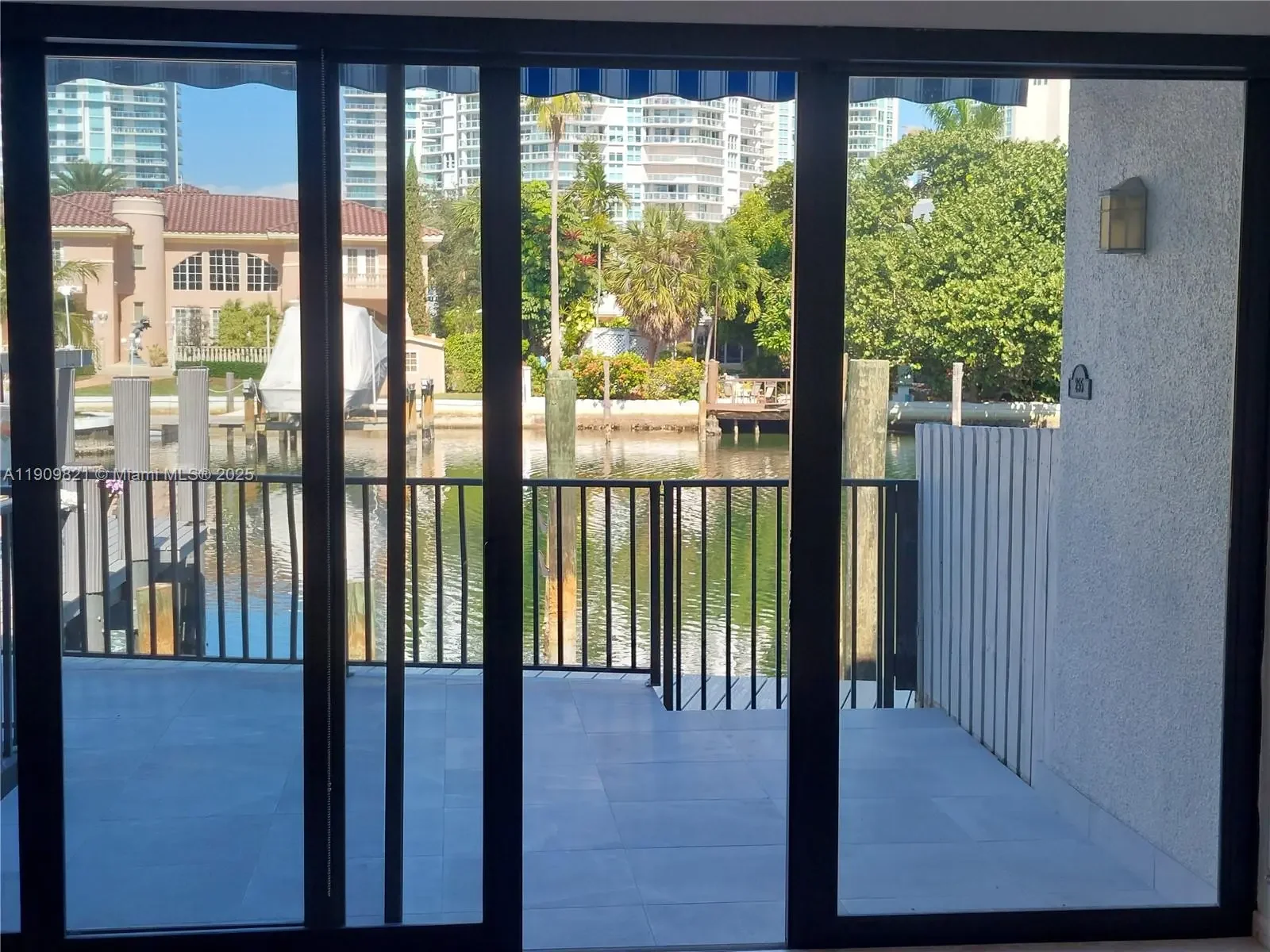 With a deed dockage to place your boat, and a tenant to provide you cashflow, a Spacious Waterfront Townhome on Poinciana Island. Gated, 3 car parking, 3 bed, 2.5 bath townhome with vaulted skylight ceilings, kitchen, marble floors, and a patio with slate floors and water views. one car garage plus assigned front parking. New roof, impact front door, airy, light-filled interiors. The ocean is across the street. Resort-style amenities include two pools, tennis courts, gym, clubhouse, and 24/7 gated security with patrol. Water, sewer and trash included. HOA pays insurance, cable, and internet. Island-wide high-speed wireless connectivity, Enhanced security with cameras in all plazas, garages, and along the boardwalk, The location is unbeatable: just 15 minutes by boat to the Bal Harbour Inlet and sandbar and aventura mall is 15 minutes away.