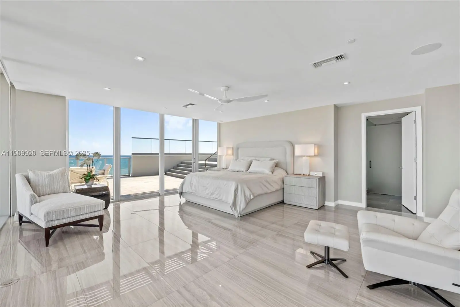 Perfectly positioned on the 6th floor of the North Tower, this exceptional 4-bedroom, 4.5-bath residence spans the entire floor, offering the privacy, scale, and ambiance of a true penthouse. Floor-to-ceiling glass walls frame panoramic ocean, resort, and skyline views from every room, while the expansive 120-foot-wide, 2,688 sq. ft. terrace invites effortless indoor-outdoor living and entertaining, complete with a private Bradford spa overlooking the Atlantic. Designed with refined finishes and open, light-filled spaces, this home embodies serenity and sophistication, with two storage units, multiple parking spaces, and exclusive access to Auberge’s world-class amenities—the Evara Beach Spa, Del Mar restaurant, and an array of resort-style pools and services defining coastal luxury.