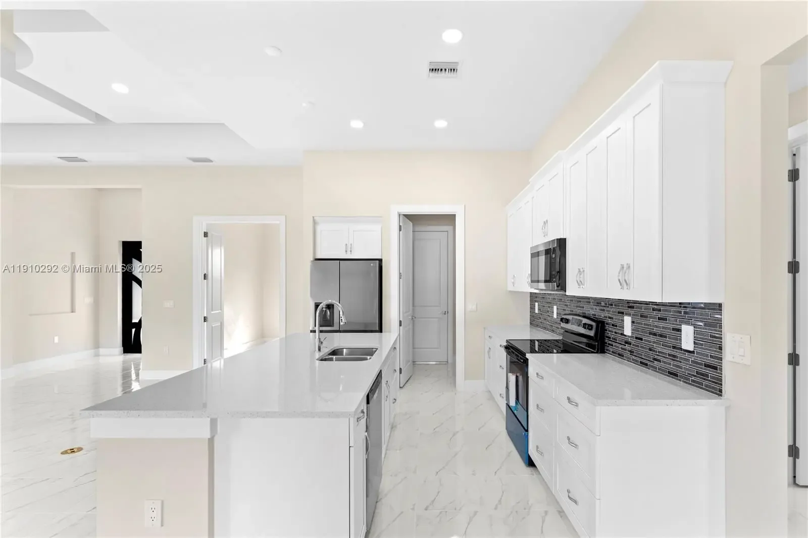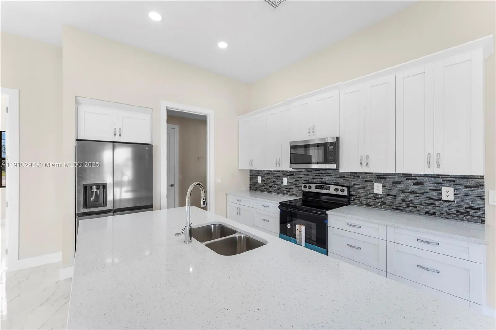 This new construction home features high-end updates and finishes. With 3 bedrooms + Den, 2 bathrooms and 1871 square feet of living space. Equipped with stainless steel appliances, quartz countertops, soft-close white cabinets. The center island with ample space and integral to the great room and dining area. Ceramic floors and tray ceilings. These extend to the master bedroom that is full of comfort and spaciousness, with separate walking closets, spectacular bathroom with large shower and exposed bathtub, double sinks and closet to keep the entire area free and accessible. 2-car garage, laundry facilities conveniently located inside the residence, and impact-resistant doors and windows. This home truly has it all. Some materials and colors may vary.