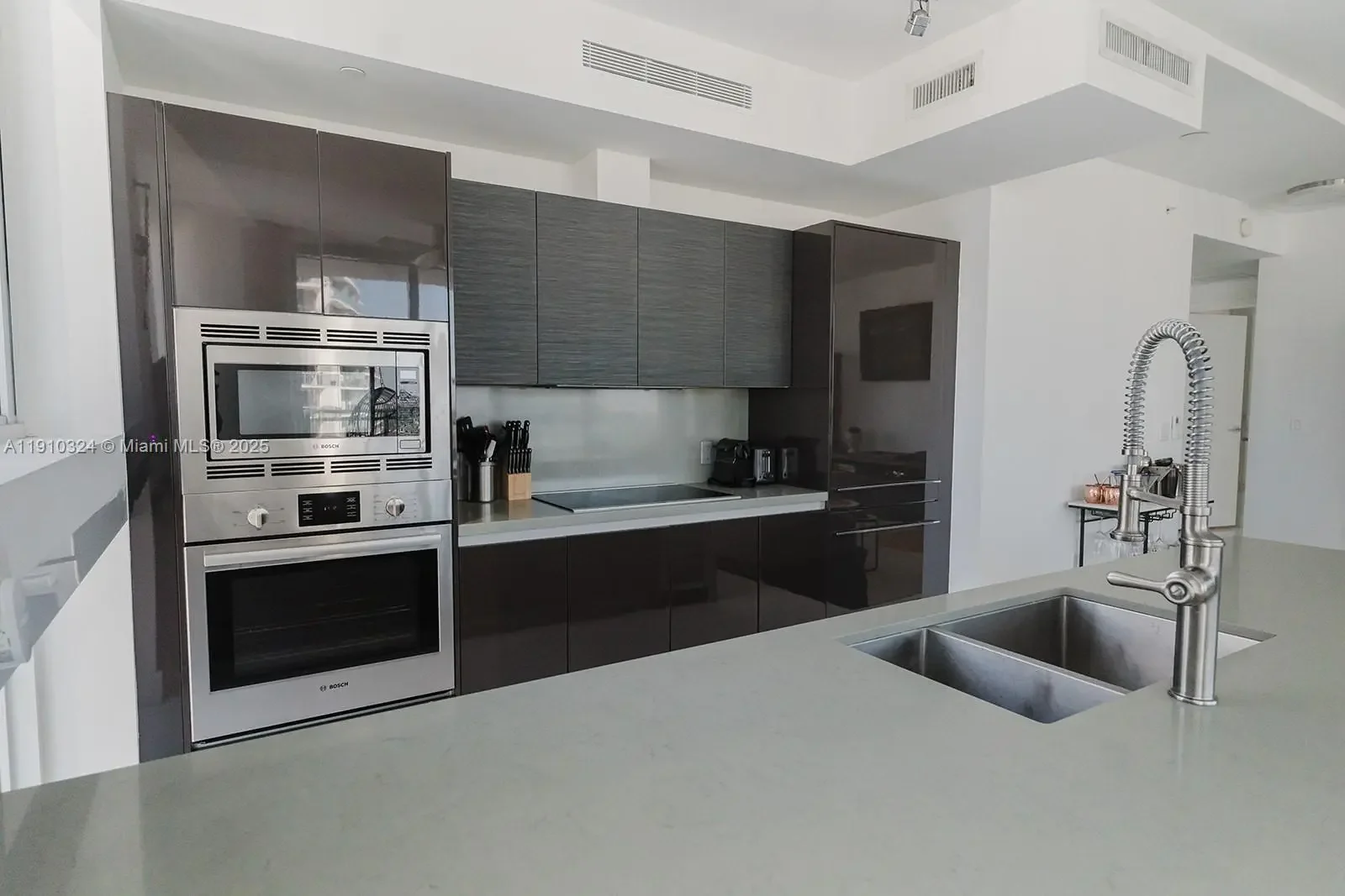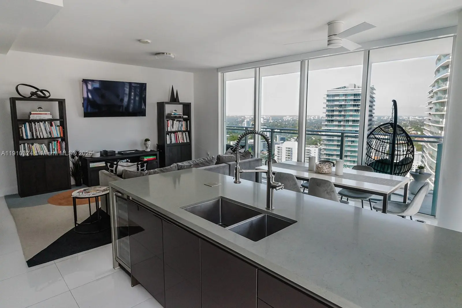 Whether you’re looking to take it slow with a flick in the private screening room located in the members' lounge or get your heart racing at the fitness center The Bond is equipped to meet your every need. Enjoy a swim in the lap pool, entertain friends and family in the BBQ areas, cabanas and lounges, or luxuriate in the sauna and steam rooms. The Bond is conveniently located a short walk away from Mary Brickell Village and City Centre. In the heart of Brickell Miami, you'll find fabulous restaurants, bars, theaters, and clubs to keep you busy. This stunning, 1,134 square foot corner unit, located on a high floor, provides expansive westward views that drench your home with light. Assigned parking plus valet services are available. Minimum rental period is 30 days.