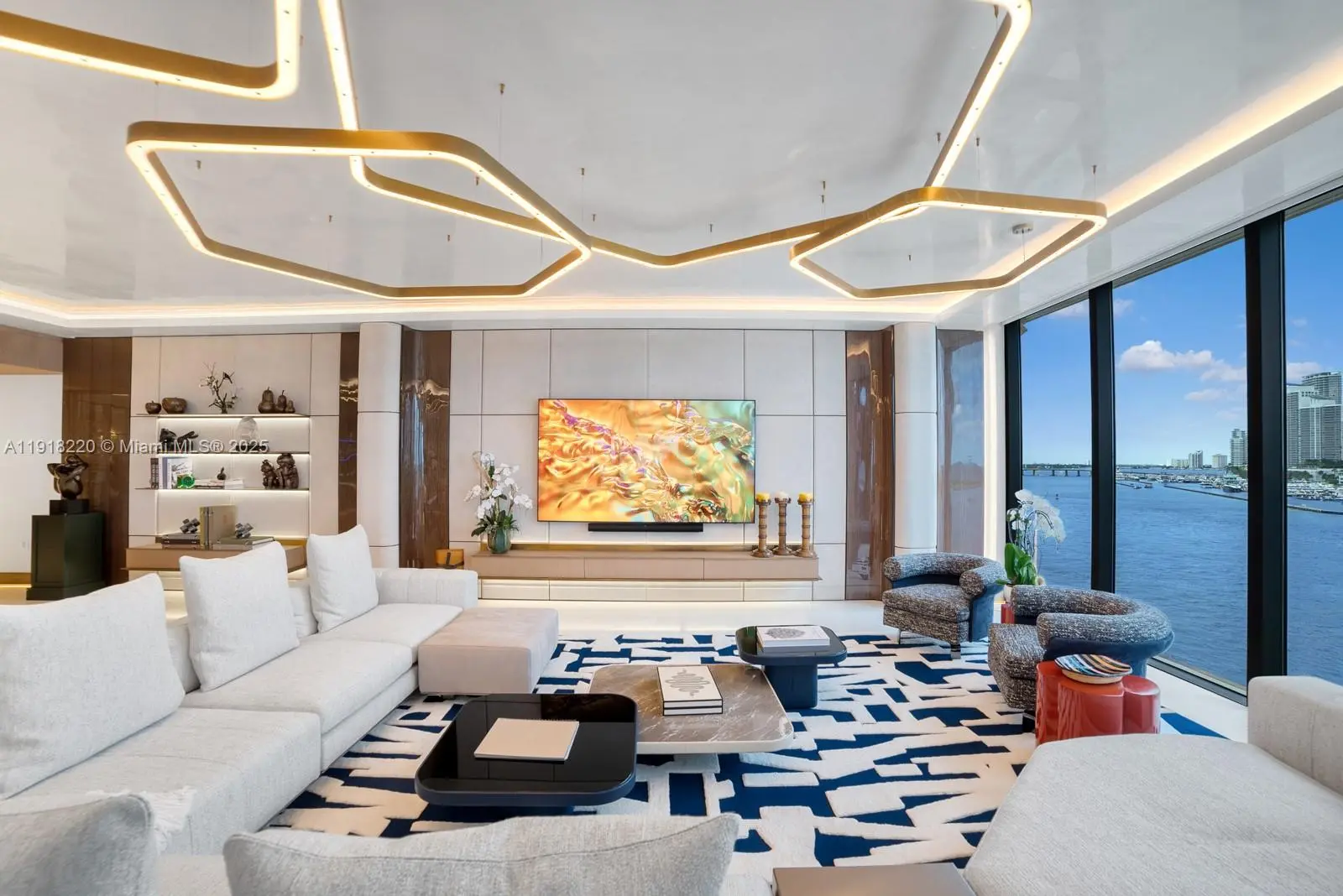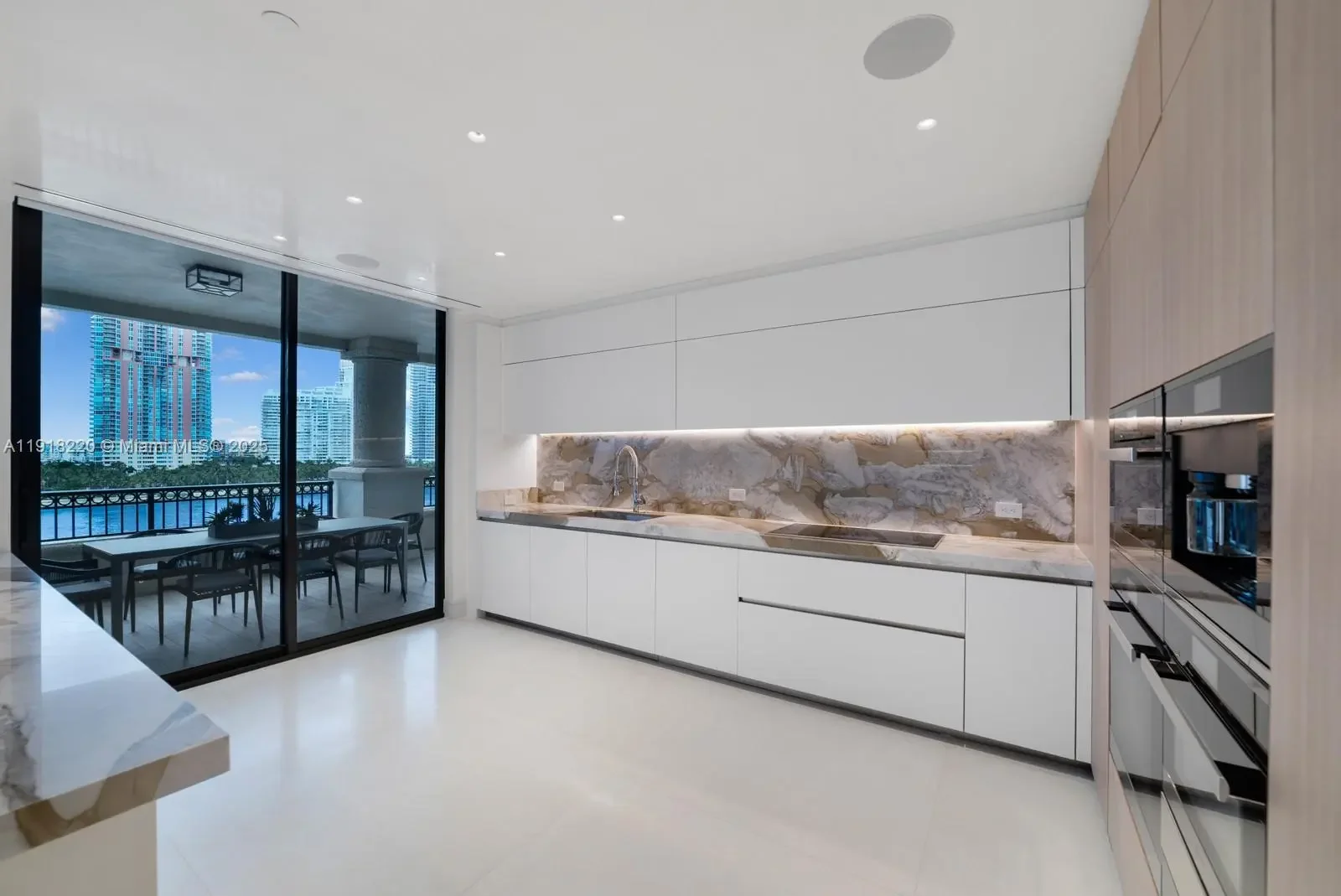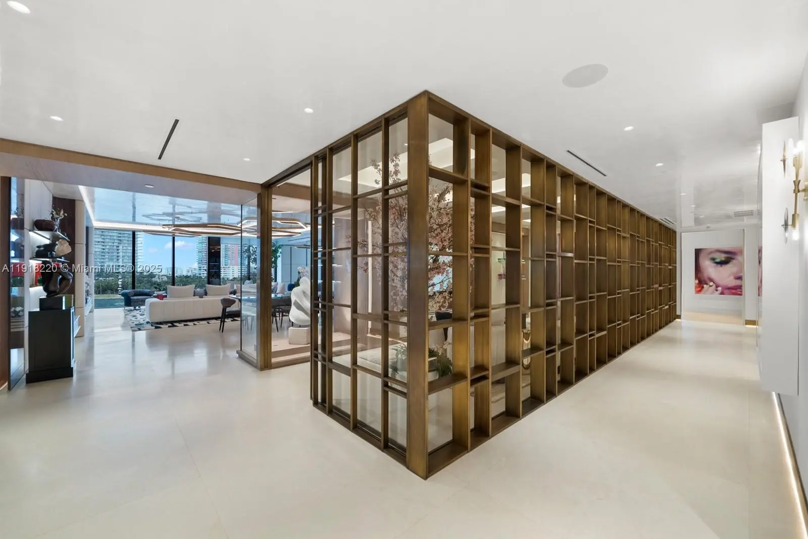 This elegantly designed 4-bedroom, 4.5-bath residence at Palazzo Della Luna offers 4,904 SF of refined interiors and a 996 SF terrace, totaling 5,900 SF of luxurious living space. Fully furnished with an exceptional collection from Minotti, Henge lighting, Tracey Glover, the home is turnkey and curated to perfection. A private elevator opens into a sophisticated foyer that leads to an expansive great room with floor-to-ceiling glass and beautifully proportioned living and dining spaces. The East center-stack layout provides a harmonious flow throughout the home, while the terrace offers beautiful views of the ocean and Government Cut, creating an elegant backdrop morning to evening. The Boffi-designed chef’s kitchen is a showcase of craftsmanship and functionality, equipped with top-of-the-line Miele and Sub-Zero appliances, sleek custom cabinetry, and exquisite stonework. The private principal suite is a serene retreat featuring a cozy sitting area, dual walk-in closets, and direct water views. The spa-caliber bathroom is luxuriously appointed with a book-matched Carrara marble rain shower, a sculptural soaking tub, and refined designer fixtures. Palazzo Del Luna delivers exceptional amenities including 24-hour concierge, valet, private pools, fitness center, beauty salon, children’s play spaces, and access to Fisher Island’s exclusive lifestyle—private beach club, golf, spa, tennis center, fine dining, and more.
