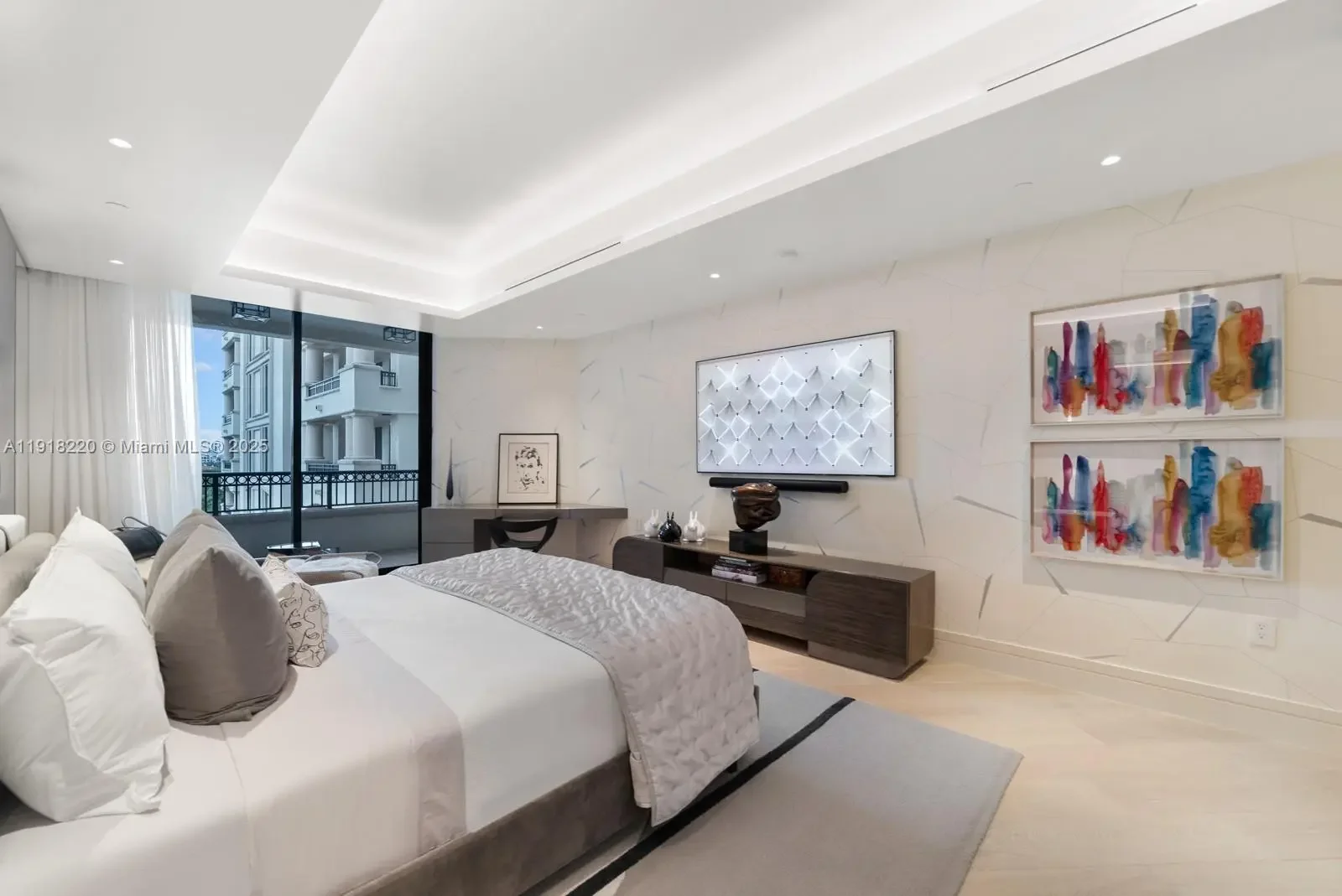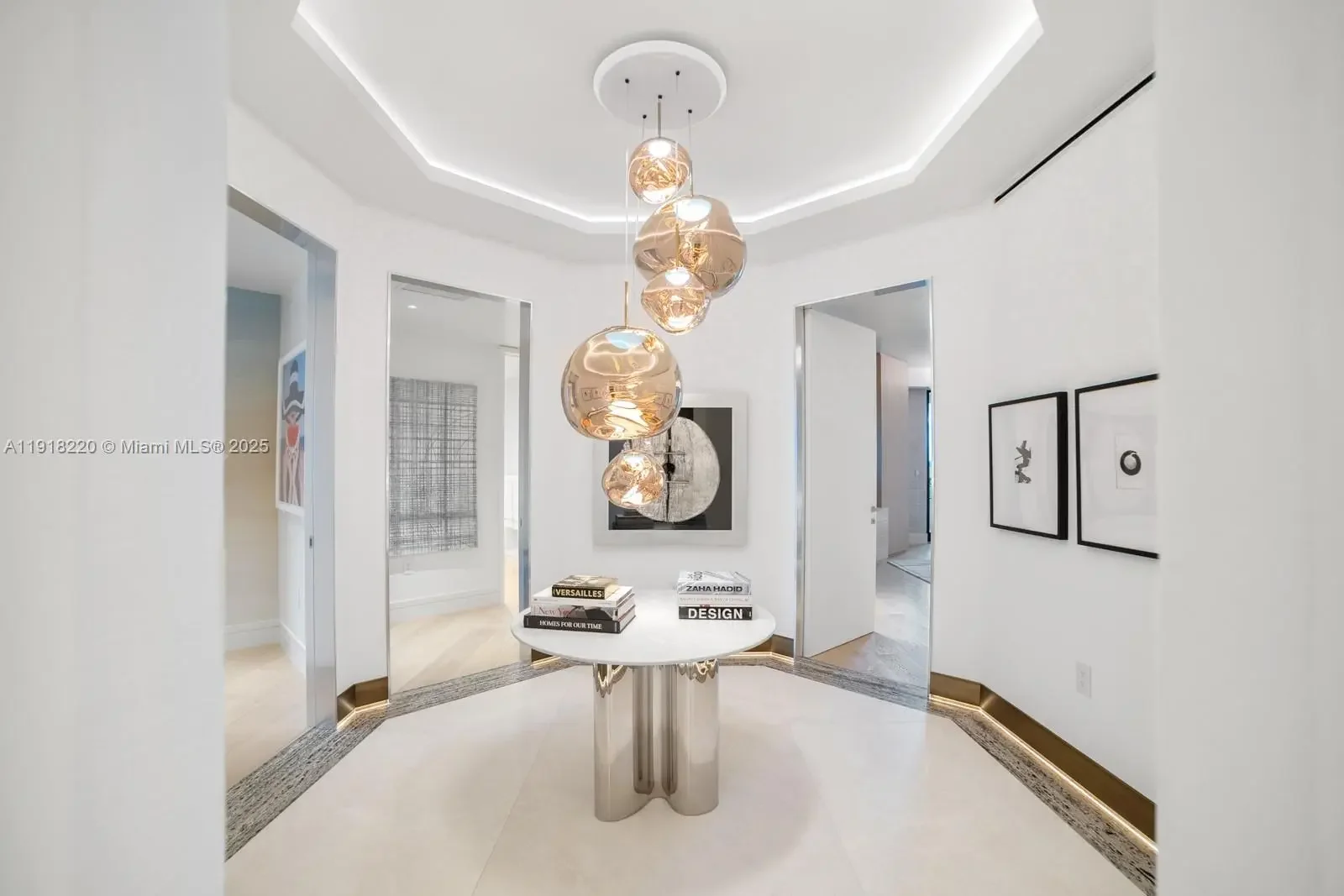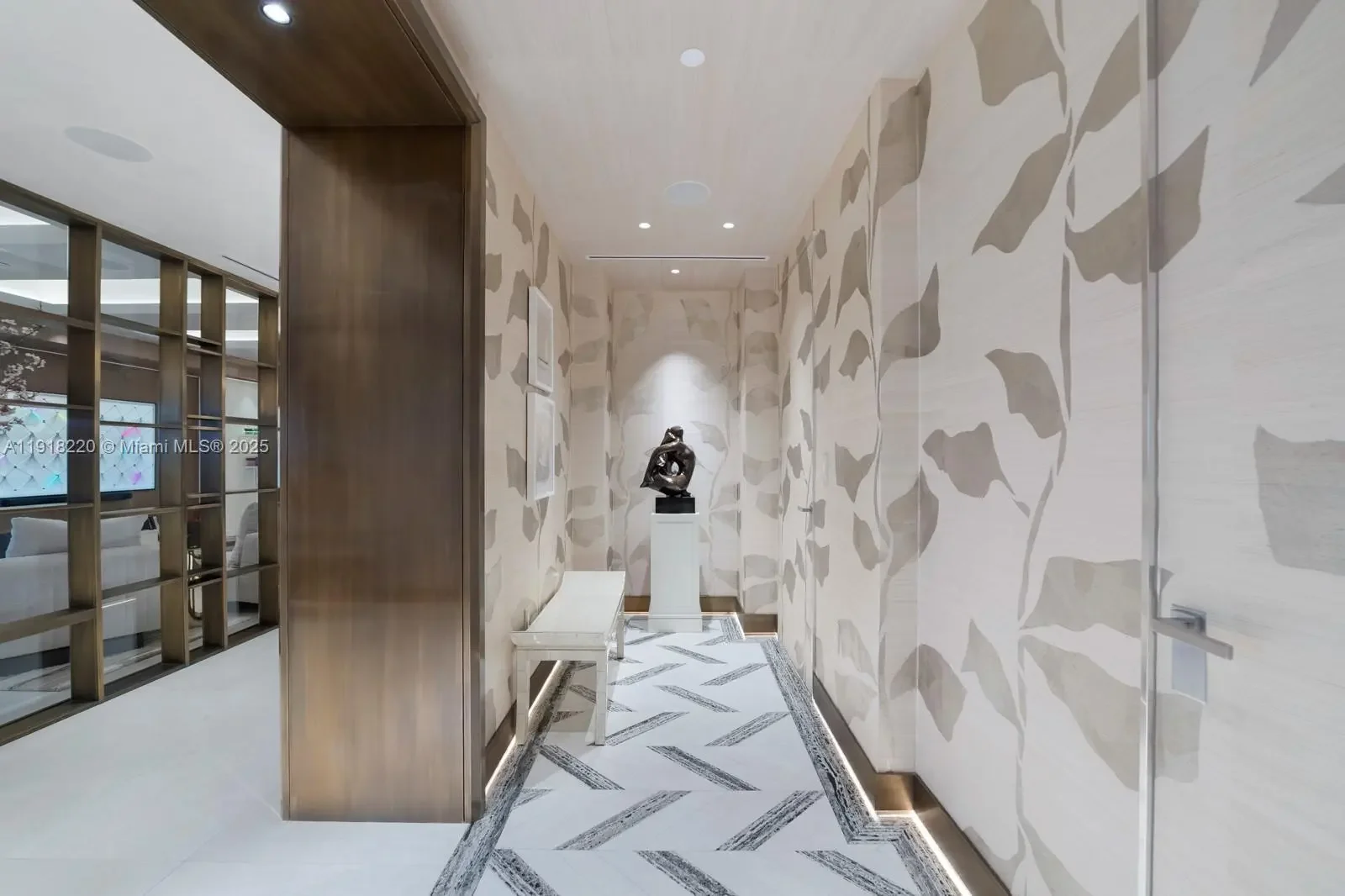 This elegantly designed 4-bedroom, 4.5-bath residence at Palazzo Della Luna offers 4,904 SF of refined interiors and a 996 SF terrace, totaling 5,900 SF of luxurious living space. Fully furnished with an exceptional collection from Minotti, Henge lighting, Tracey Glover, the home is turnkey and curated to perfection. A private elevator opens into a sophisticated foyer that leads to an expansive great room with floor-to-ceiling glass and beautifully proportioned living and dining spaces. The East center-stack layout provides a harmonious flow throughout the home, while the terrace offers beautiful views of the ocean and Government Cut, creating an elegant backdrop morning to evening. The Boffi-designed chef’s kitchen is a showcase of craftsmanship and functionality, equipped with top-of-the-line Miele and Sub-Zero appliances, sleek custom cabinetry, and exquisite stonework. The private principal suite is a serene retreat featuring a cozy sitting area, dual walk-in closets, and direct water views. The spa-caliber bathroom is luxuriously appointed with a book-matched Carrara marble rain shower, a sculptural soaking tub, and refined designer fixtures. Palazzo Del Luna delivers exceptional amenities including 24-hour concierge, valet, private pools, fitness center, beauty salon, children’s play spaces, and access to Fisher Island’s exclusive lifestyle—private beach club, golf, spa, tennis center, fine dining, and more.