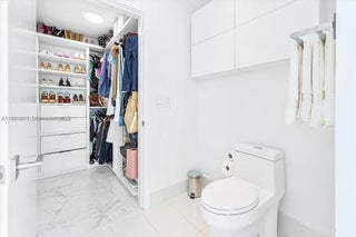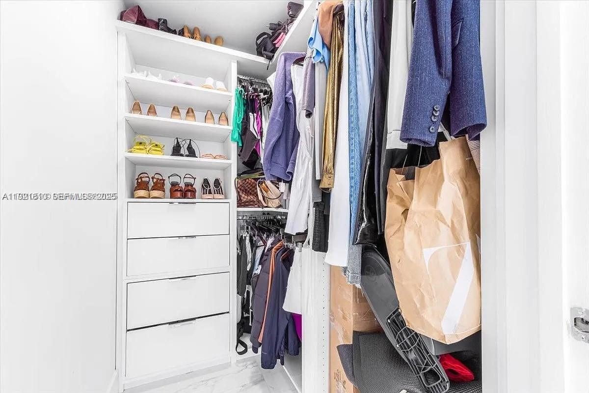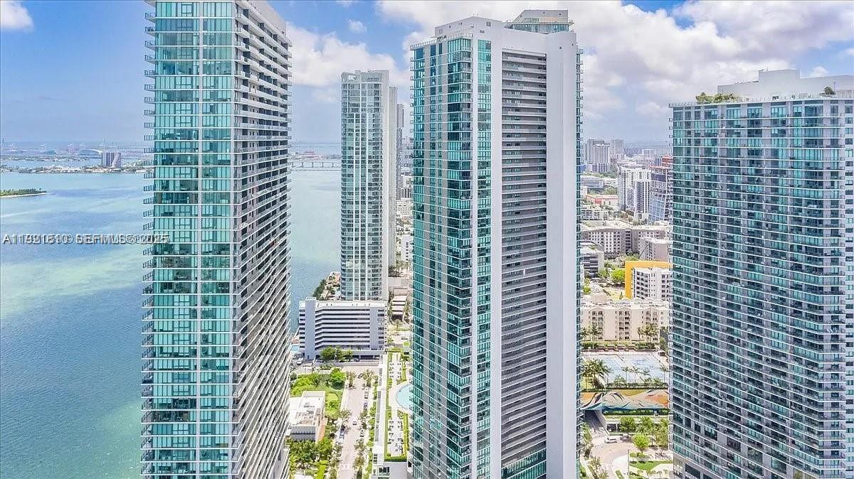 Corner residence with floor-to-ceiling windows wrapping the entire living space, flooding the home with natural light that carries through into the bedroom and bathroom. Elevated throughout with upgraded designer flooring selected from the developer’s premium collection, paired with light contemporary cabinetry that is both refined and rarely available in the building. Thoughtful built-ins add function and style in the bedroom, complemented by a fully customized walk-in closet with generous storage. Enjoy sweeping water views from every angle and a private balcony positioned to capture both sunrises over the bay and sunsets across the skyline. A residence that balances clean design, comfort, and views in one of Edgewater’s most desirable addresses. Set within an ultra-luxury, full-service building offering an unmatched amenity collection including a full-size bowling alley, tennis courts, golf simulator, cigar lounge, spa and wellness facilities, business center and resort-style pool deck. The community is anchored by a waterfront boardwalk, neighborhood dog park, and on-site waterfront dining, creating a true live-work-play atmosphere right outside your door.