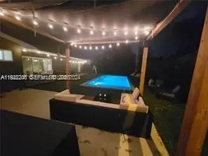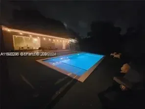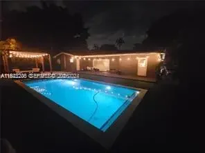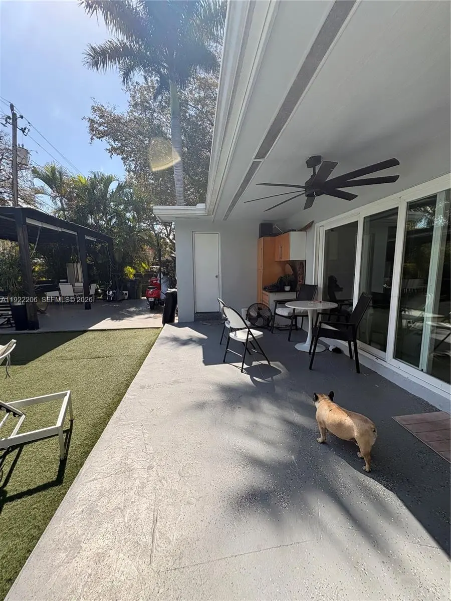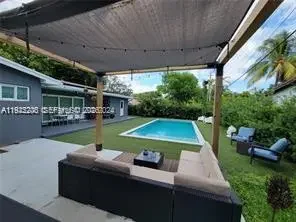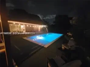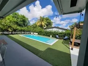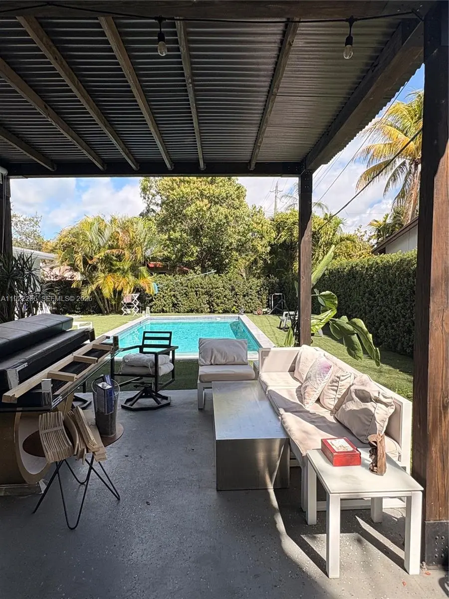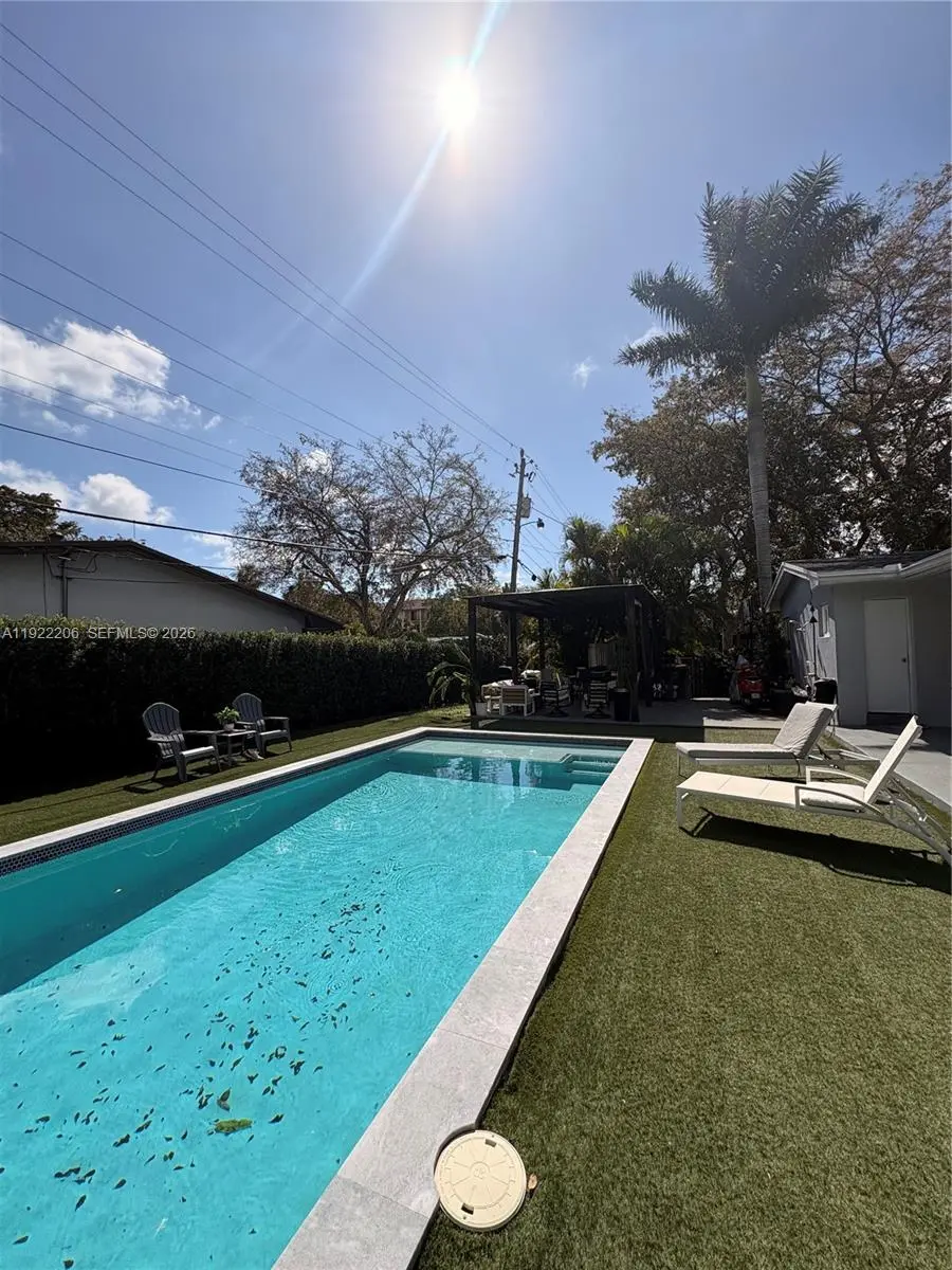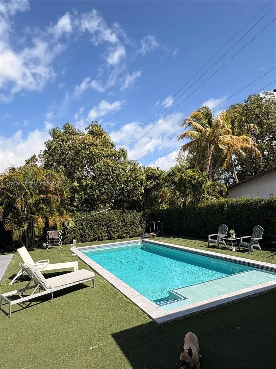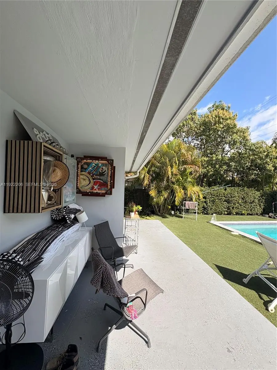 This beautifully maintained single-story Mid-Century Modern home offers over 2,000 sq ft of living space in a classic Florida ranch-style design. The spacious layout includes a bright, open living room with sliding doors that overlook a large backyard and pool area, a light-filled kitchen, four bedrooms, two full bathrooms, a separate laundry room, and an attached garage. The property is equipped with 47 solar panels, offering significant energy efficiency. Investor opportunity: The home is currently tenant-occupied through 03/31/2026, with the tenant paying $5,500 per month and willing to renovate for another year. Please note: Showings only on wednesday from 2pm to 4pm with 24 hours advance notice . A video tour is available upon request.