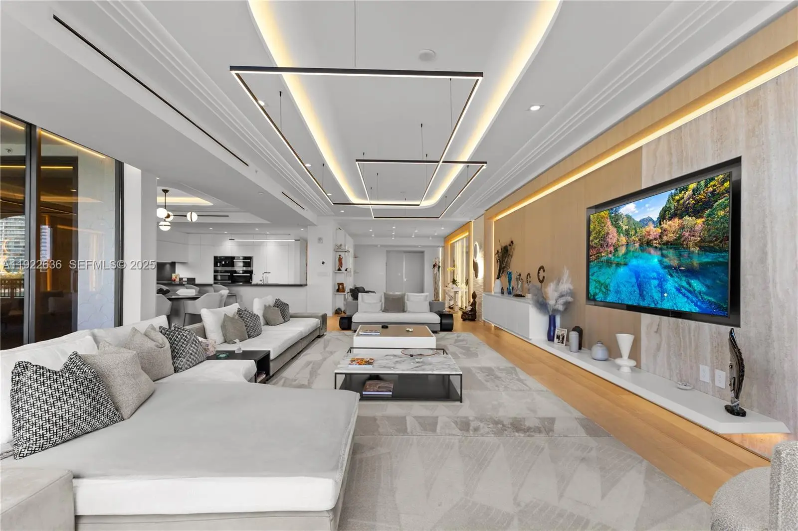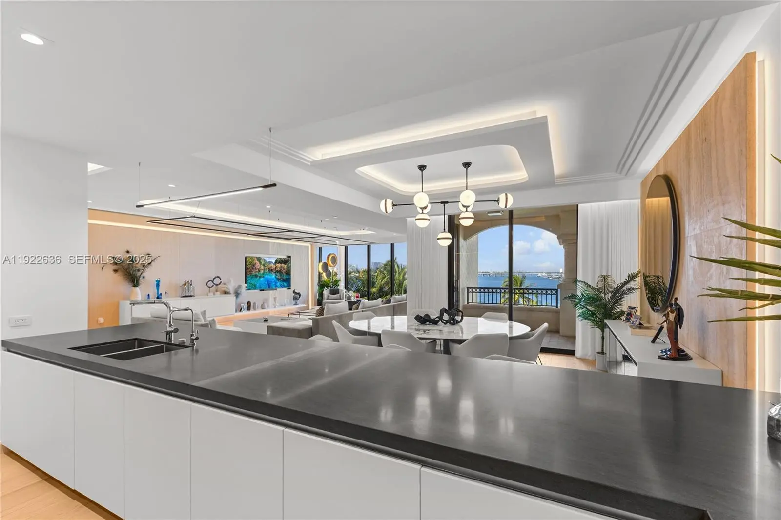 An exceptional flow-through residence at Palazzo Della Luna, Fisher Island’s newest and most exclusive full-service building. Thoughtfully designed and exquisitely furnished by INDELUX Italia, this turnkey home offers 3,620 SF of elegantly refined interiors+778 SF of deep terraces, totaling 4,398 SF of seamlessly connected living space. A private elevator entry unveils a grand, light-filled great room that frames a captivating panorama sparkling South Beach, the tranquil Miami Beach Marina, the iconic downtown Miami skyline, and a front-row view of Government Cut, where cruise ships glide past in an unforgettable procession. The residence features 3 bedrooms and 3.5 baths, showcasing wide-plank European oak flooring, a custom BOFFI kitchen appointed with Miele and Sub-Zero appliances, wine refrigeration, and BOFFI bathrooms finished in Italian stone with Duravit and Dornbracht fixtures. Custom millwork, integrated built-ins, and a warm neutral palette enrich the home’s sophisticated contemporary aesthetic. Enhancing everyday comfort, the residence includes two discreetly integrated water filtration systems a whole-unit purifier elevating the quality of all incoming water, and a reverse osmosis system at the kitchen sink providing pristine drinking water. Offered fully furnished, this home allows for an effortless and immediate move-in experience.