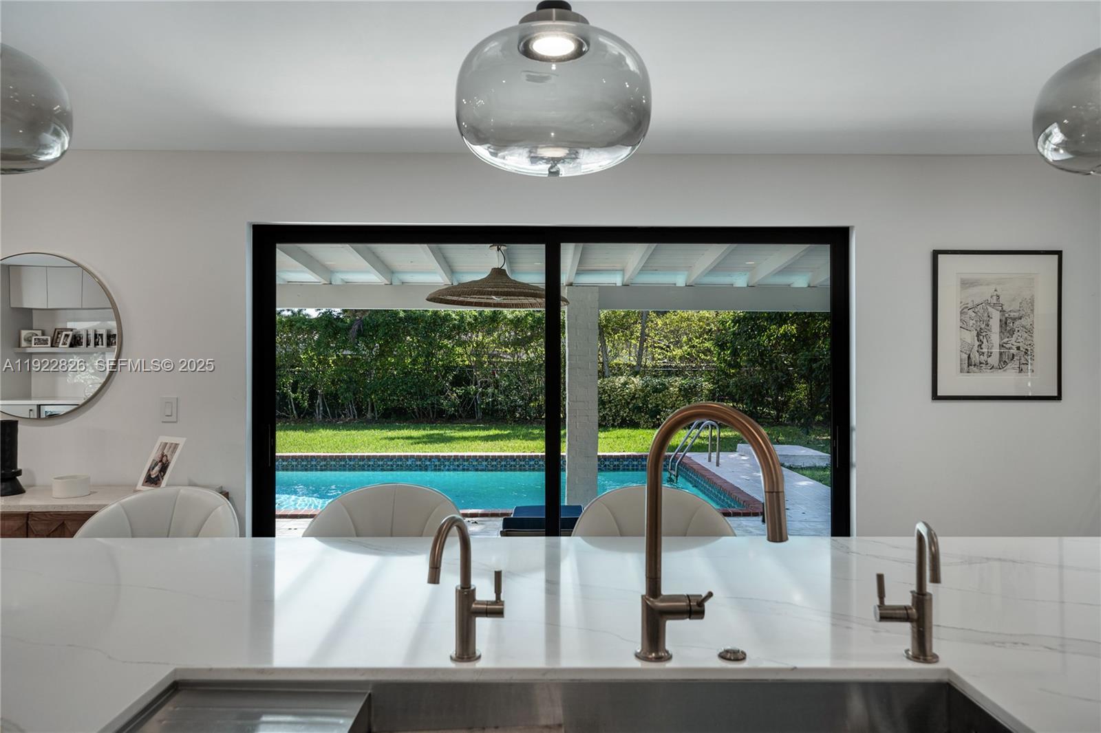 Completely renovated by Hollub Homes, this exquisite 5 bedrooms plus den, 3.5-bath is located in the prestigious Shane Estates enclave of Pinecrest. Open, sun-filled layout features light wood floors, refined finishes, and impeccable craftsmanship. Designer kitchen w/ a large island, premium appliances, and elegant detailing, ideal for everyday living and entertaining. Master evokes a private spa retreat, complete with en-suite bath and custom walk-in closets. Upgrades include all-new electrical and PVC plumbing, dual high-efficiency A/C systems, and impact windows and doors throughout. The backyard a covered patio and pool. Quietly situated near a neighborhood park with tennis courts and just minutes from top-rated Pinecrest schools, shopping, and major highways.