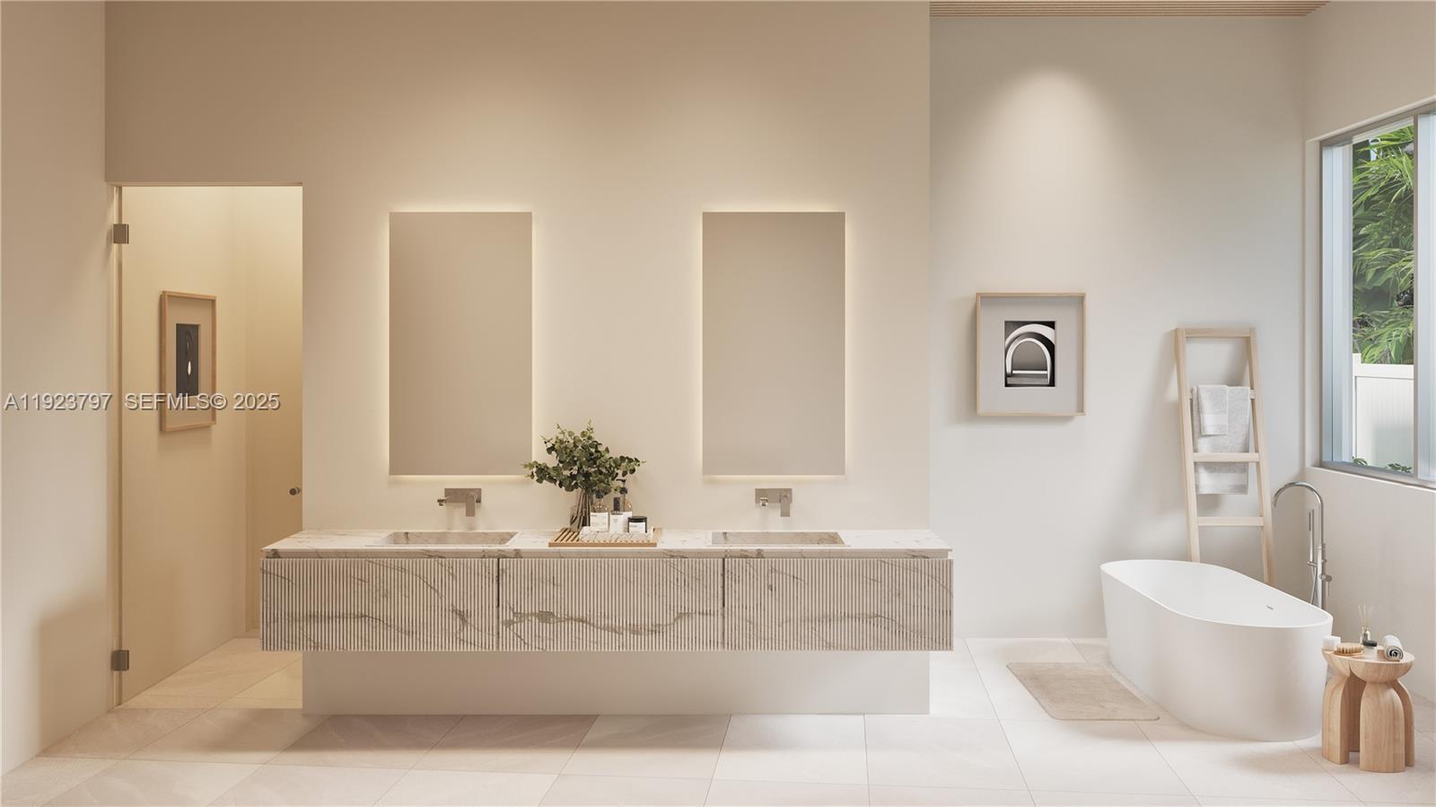 Exceptional new-construction modern residence in Miami Springs, developed by Luxom Developments, offering 3,445 sq ft of living area on a 10,800 sq ft lot, with 4 bedrooms, 4.5 bathrooms, and a private office. Crafted with a focus on architectural elegance and natural light, this home blends clean lines, warm textures, and premium materials to create a refined setting for contemporary living. The expansive social area features a custom chef’s kitchen with bespoke cabinetry, integrated high-end appliances, and a sculptural waterfall island that anchors the space with balance and intention. Designer lighting and volume ceilings complement the open layout, emphasizing flow and connection. Floor-to-ceiling glass sliders extend the living experience outdoors, revealing a landscaped setting designed for relaxation and entertaining. The backyard features a pool, lounge areas, covered terrace, and a fully equipped summer kitchen, creating a seamless transition between indoor comfort and outdoor enjoyment. The primary suite overlooks the pool and includes a spacious spa-style bathroom with double vanities, walk-in shower, soaking tub, and a custom-built closet. Three additional ensuite bedrooms offer comfort and privacy, each designed with curated finishes and natural light. A dedicated office, oversized two-car garage, and thoughtful interior details complete the home. A sophisticated residence combining modern design, functionality, and comfort in Miami Springs.