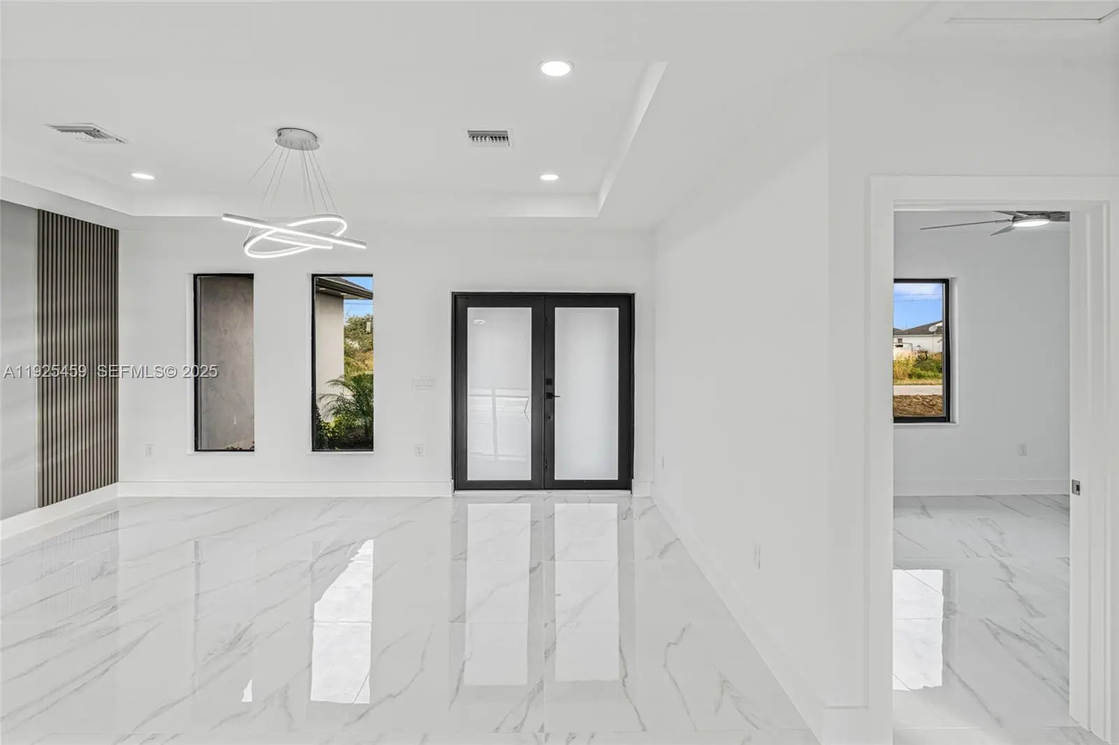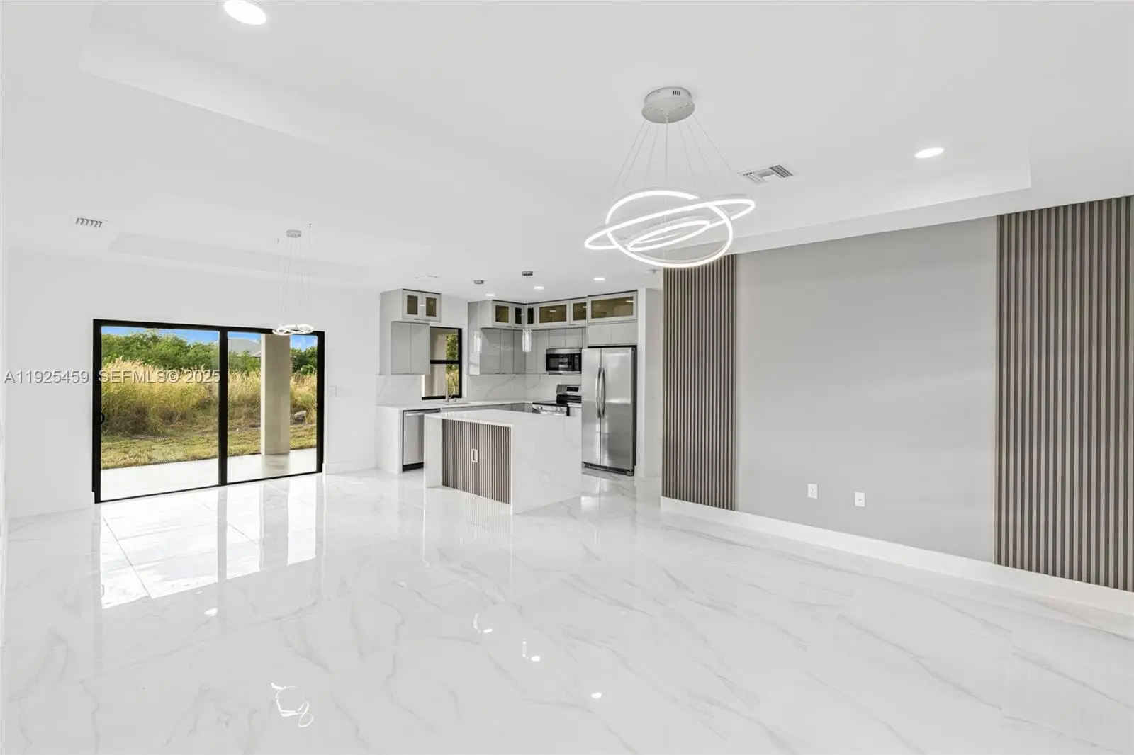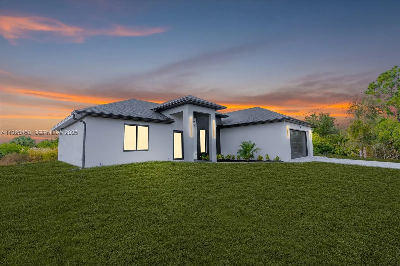 Brand-new 2025 construction! This beautifully designed 3 bedroom, 2 bathroom home offers 1,387 sq ft of living area and 2,115 total sq ft. Featuring concrete block construction, shingle roof, impact-resistant openings (per plan), and modern finishes throughout. Enjoy an open-concept layout with a spacious great room, dining area, and a bright kitchen with island, tile floors in wet areas, and 9’4” ceilings in main areas.The master suite includes a walk-in closet and a modern bathroom with walk-in shower. Home also includes a covered lanai, laundry room inside, and a 2-car garage.Located in a fast-growing area of Lehigh Acres with new construction all around.Seller is offering closing cost assistance with a strong offer!Perfect for first-time buyers, investors, or anyone looking for a low-maintenance new build ready to close. Seller is contributing with 8k for closing costs.