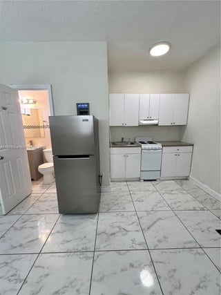 ONLY 1st month and Deposit to move in! WATER AND ELECTRIC INCLUDED WITH RENT! only 1 car space. RAPID APPROVAL ..Discovery this cozy affordable studio apartment in the hear of hallandale! Ideal for a single tenant or minimalist lifestyle. Unit features large, glossy white tiles with gray marbling, New white kitchen cabinets, and freshly painted, giving a sleek, polished, and easy-to-clean finish. Newly renovated bathroom as well! Compact kitchenette along one side of wall by entrance Stainless steel refrigerator mid size, A round flush-mount LED fixture provides illumination and Fan directly over the kitchen area & 1 wall a/c unit. LARGE SHARED GRASS PATIO SPACE. Small pets ok $300 pet fee.
