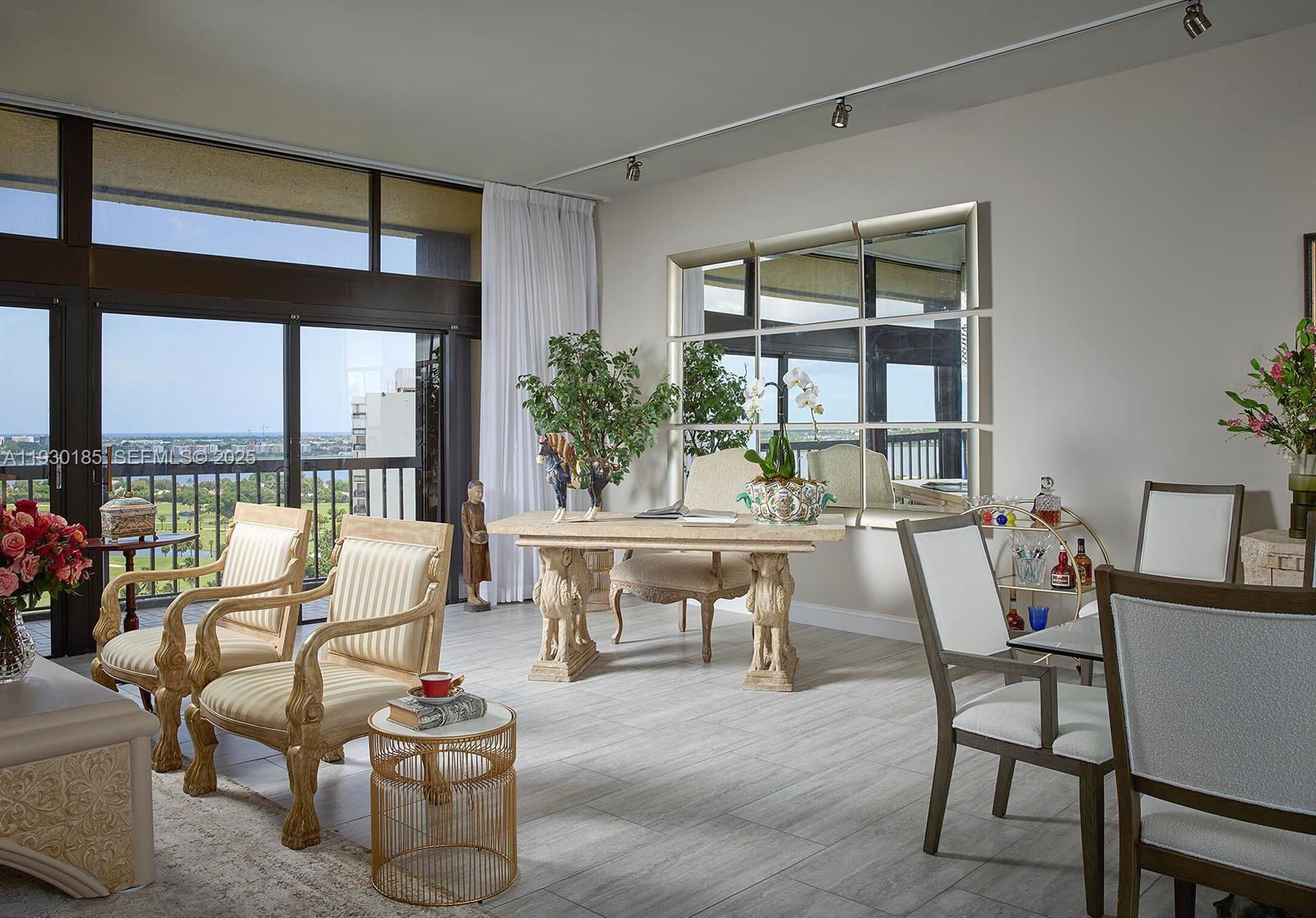 Magnificent lake, golf course and ocean views are the most fabulous features of this spectacular penthouse residence. It offers 10-foot ceilings, floor-to-ceilling windows, two large bedrooms with spacious en-suite bathrooms, an open gourmet kitchen with specimen granite countertops, stainless steel appliances and a kitchen island. This newly renovated designer furnished apartment presents a lovely residential experience, a very tranquil space featuring privacy with only four units on the floor. Available for an annual rental with options to renew.