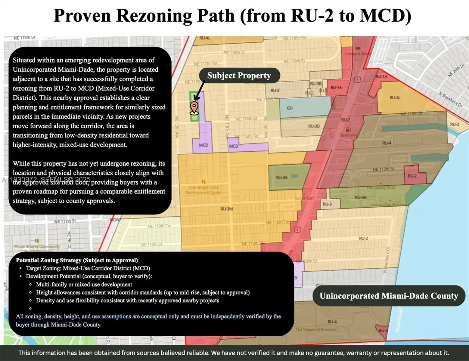 Income-producing opportunity in Miami-Dade’s Biscayne Corridor. This 0.98-acre site totaling 42,640 SF is well-positioned for future development. The property includes a duplex and a single-family home, providing steady rental income while entitlements are pursued. Tenancies are month-to-month, offering flexibility for a buyer’s plans. A key feature is frontage on both NE 116th Street and NE 115th Street, which supports efficient site planning and access. A nearby parcel of similar size has already obtained rezoning approval along this corridor, helping limit uncertainty for investors seeking a comparable change from RU-2 to MCD. Do not disturb tenants.