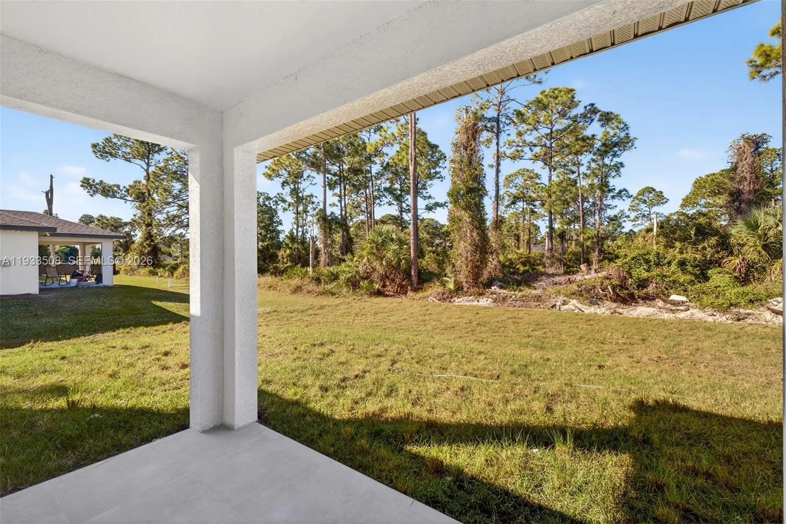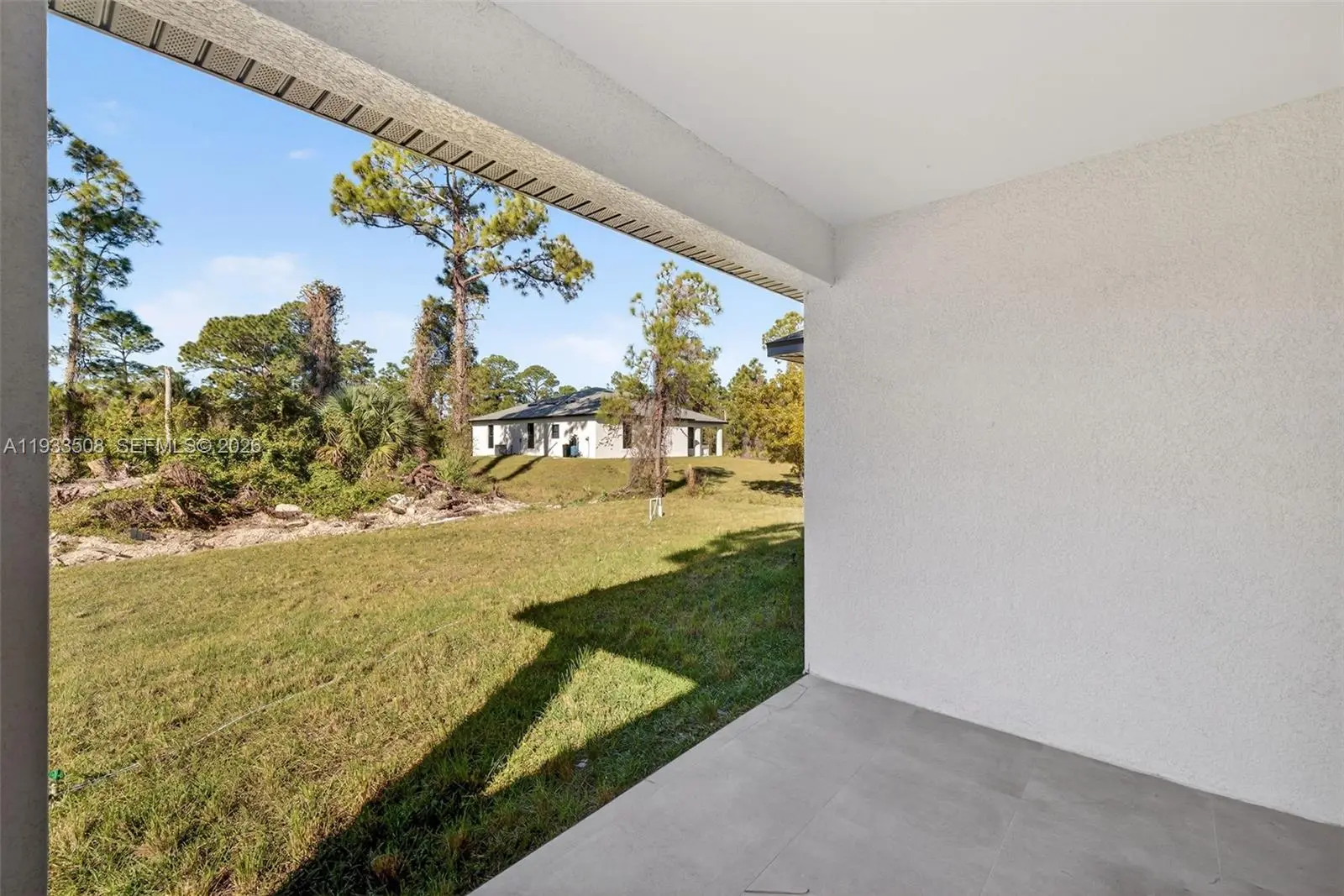 Seller offering closing cost assistance with a full-price offer, seller concessions/contribution toward buyer closing costs. Move-in ready new construction with Certificate of Occupancy issued and immediate occupancy available. This newly constructed home offers exceptional value for a 4-bedroom new build in Lehigh Acres and is built on an elevated pad for added peace of mind. Located at 220 Lomax Ave S, the property sits on a quarter-acre lot and features 4 bedrooms, 2 bathrooms, a 2-car garage, and a covered lanai. The open-concept layout is designed for comfort and durability, highlighted by 14-foot ceilings in the foyer and 11-foot ceilings in the great room and primary suite, creating a spacious feel rarely found in comparable homes. Interior finishes exceed standard builder-grade specifications and include porcelain tile flooring throughout, impact-rated windows and doors, a cohesive interior design package, and smart mirrors in the bathrooms. The kitchen features quartz countertops with a full-height matching quartz backsplash, upgraded wood cabinetry, dedicated pantry, large center island, stainless steel appliances, and a smart refrigerator with integrated display. Primary suite with a walk-in closet and installed shelving, a laundry room with utility sink, a professionally finished epoxy garage floor, and a full sprinkler system. Easy access to I-75, Ft Myers, SW Florida International Airport, shopping, dining, and schools. Easy to show.