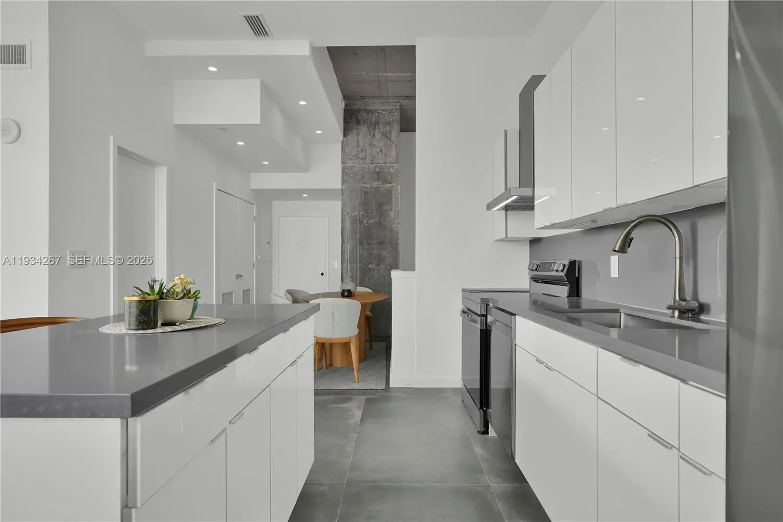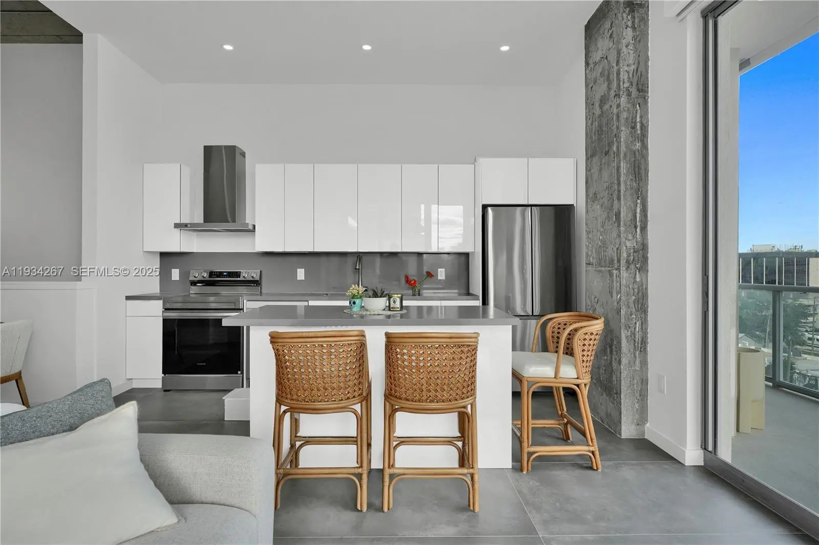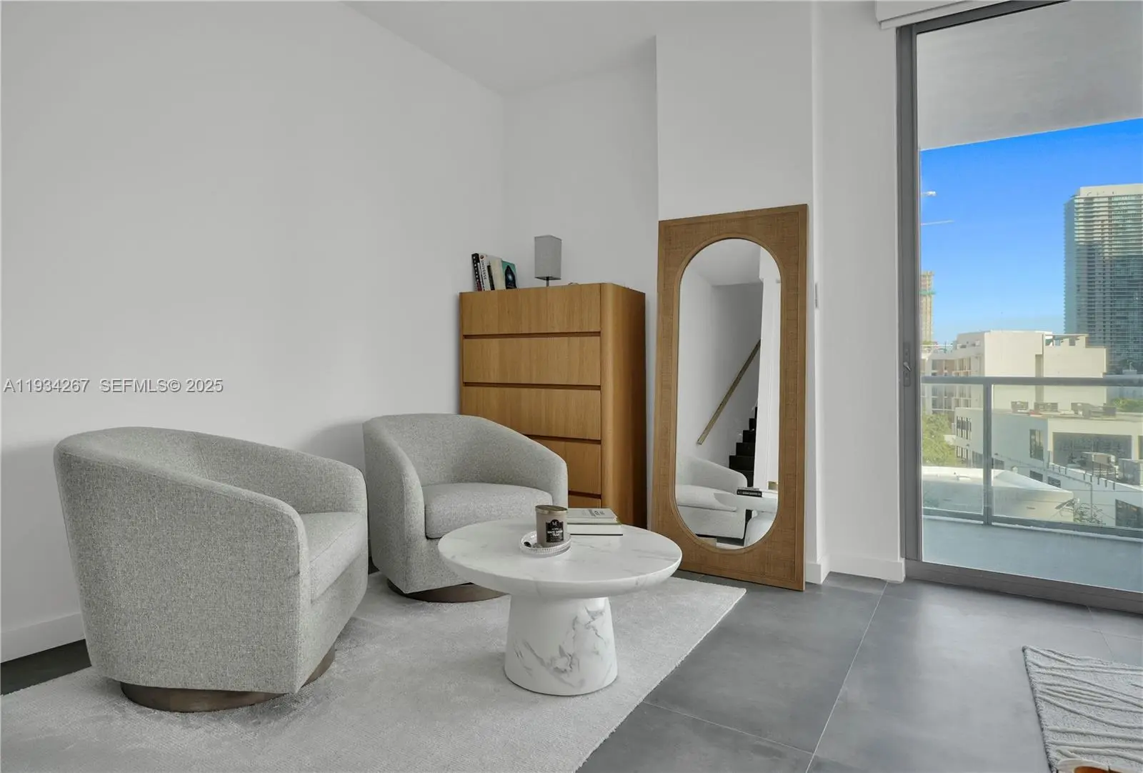 Unique Midtown Loft. Fully renovated 1,100 sq ft duplex corner loft. Industrial style, with exposed concrete features, stone tile floors, floor-to-ceiling windows, Lutron blinds, and over 600 sq ft of wraparound terraces on two floors. The unit has a modern kitchen with large island and brand new appliances, new bathrooms, a laundry room, same floor parking space, and space for storage, a home office or a dressing room. Offered furnished or unfurnished, this unique residence blends contemporary design with functionality, perfect for buyers seeking a turnkey urban lifestyle. Situated in a full-service building, residents enjoy premium amenities and a prime location with unmatched walkability to shops, restaurants, cafés, and just minutes from the Design District and Wynwood, as well the I95, so the beach is only 10 minutes away.
