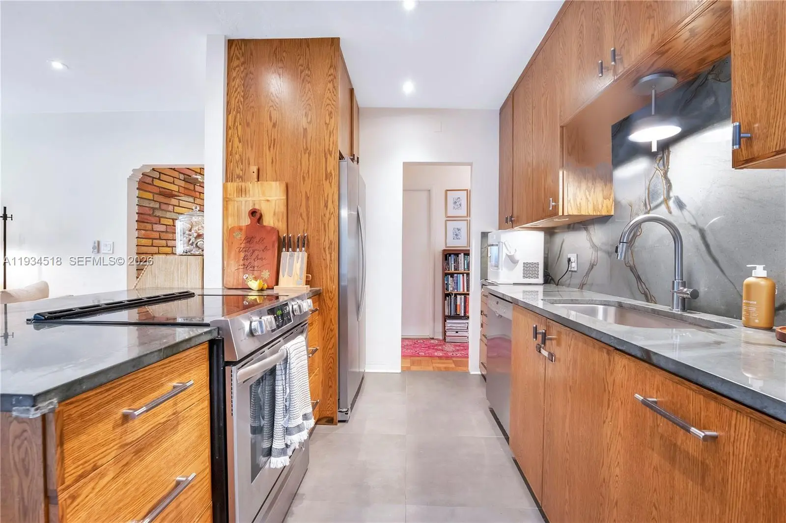 Discover this meticulously renovated Coconut Grove retreat where 1940s character meets modern sophistication. Located on a serene, tree-lined street in the highly sought-after North Coconut Grove, this 2-bedroom, 1-bathroom residence offers approximately 1,059± SF of light-filled living space and a private tropical setting. The open-concept layout showcases preserved original details, refinished oak parquet floors, and thoughtful interior upgrades that honor the home’s historic charm. The chef’s kitchen features premium quartzite countertops, custom cabinetry, and high-end stainless-steel appliances. Impact-resistant windows and doors enhance energy efficiency and peace of mind. Situated on a 6,550± SF lot, the outdoor space is designed for the Florida lifestyle, featuring a private heated pool and spa, lush tropical landscaping, a brick-paver patio, open porch ideal for entertaining, attached carport, and paver-block driveway. Ideally located near Coconut Grove Village, marinas, boutiques, parks, dining, and public transportation, with easy access to Coral Gables, Brickell, and Downtown Miami.