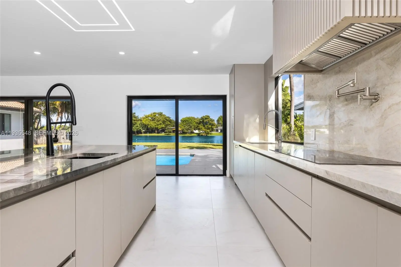 Stunning, newly & completely renovated lakefront luxury pool home - rarely available at this level. Designed for modern living & entertaining, this light-filled residence features an open-concept layout anchored by a chef’s kitchen with dual oversized islands, custom cabinetry and premium appliances with Sabbath mode. Expansive living & dining areas flow through walls of glass to a private pool, spacious patio, and serene lakefront backyard. The oversized primary suite offers a spa-style bath and peaceful water views. Impact windows and doors, smart-home tech, custom porcelain flooring, EV-ready 2-car garage, ample parking, and whole-house reverse osmosis & UV water filtration. Prime location just minutes to Aventura mall, houses of worship, entertainment & dining, and top-rated schools.