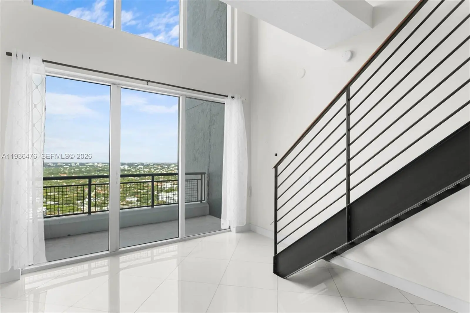 **highest floor and lowest price ** Gigantic panoramic windows with unobstructed panoramic views throughout the entire unit. This loft-style home offers a spacious one-bedroom, one-and-a-half-bath layout, featuring a private upstairs bedroom and a generous living and dining area with an open-concept kitchen on the main level. The kitchen is appointed with granite countertops and premium stainless-steel appliances. Move-in ready, the building has recently completed a full renovation of all common areas, ensuring residents enjoy a serene environment and first-class, five-star amenities.