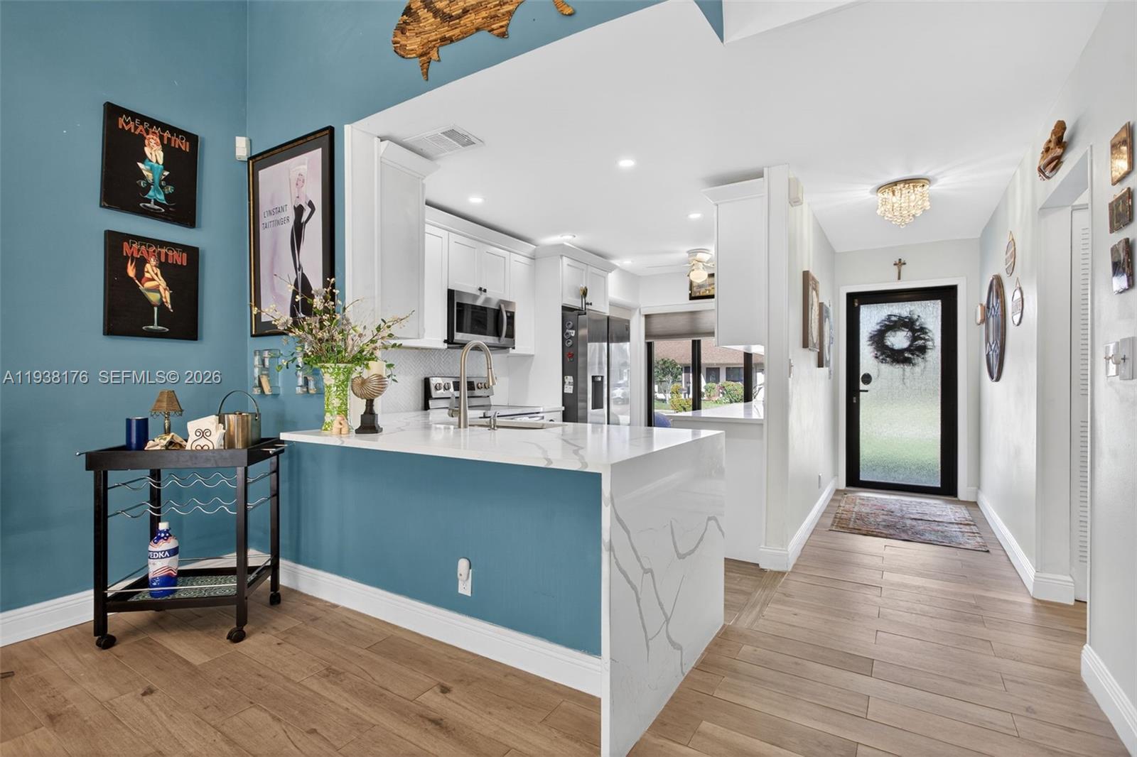 Welcome to your new beautifully updated home in the sought after 55+ community at The Meadows of Crystal Lake. This 2 bedroom, 2 bathroom home with over 1450+sq feet of living space is being offered with a brand new roof installed in 2025, new A/C system with UV Light and Air Scrubber (2022) and encapsulated with HQ Eurotech Impact Windows and Multi-locking Doors (2022). A Complete Interior Kitchen Renovation (2023) with all new stainless steel appliances and Quartz countertops; Replaced lighting fixtures, window treatments and updated outlets and switches throughout the interior of the home. The Home has flat ceilings with freshly painted walls from trim to ceiling and within the master bedroom a custom built walk-in closet awaits, as well as a fully remodeled bathroom with a new vanity, shower doors and recessed led lighting. This home also includes a new washer and dryer housed in a separate utility room within the garage. The garage has a new garage door and garage door opener equipped with MyQ technology. Come check out this beautiful residence in one of the most affordable and active 55+ communities which includes a community pool, spa and so many more amenities and services, while being placed in a perfectly convenient location to all major highways, shopping, restaurants and a short 15 minute drive to the nearest beach.
