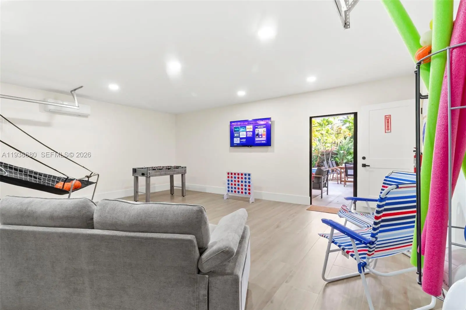 Elegant Lighthouse Point Island Retreat, available Short Term & Long Term furnished including all services ( water, electricity, internet ,landscaping, pool, cable) this new luxury home is minutes from beaches, dining, and entertainment, and just 10 minutes from Pompano and Deerfield Beach. Enjoy 360° pool and garden views from nearly every room, a heated private pool, and seamless indoor-outdoor living with outdoor dining for 8, lounge seating, sun loungers, and BBQ. The open-concept space features a chef’s kitchen, spacious living room with large TV, cable, bar, and fireplace, plus a converted garage serving as a game room/4th bedroom with smart TV, basketball setup, pull-out couch, and office space. The primary suite offers a king bed, ensuite bath, and walk-in closet. Additional bedrooms include three queen beds, one with a desk. All rooms have TVs. A full laundry room with sink, ample parking, and a park across the street with tennis courts and playground complete this upscale South Florida escape—perfect for relaxing or entertaining.
