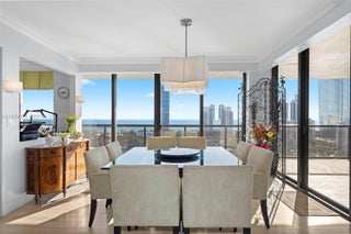 BEST LINE IN ALL OF TURNBERRY! This exceptional corner"K"line residence offers truly breathtaking,unobstructed views of the Ocean,Intercoastal and Sunny Isles from every angle. Floor to ceiling natural light fills this open and spacious layout,perfectlty designed for both every day living and entertaining. Step outside to your private wrap around terrace expansive enough for hosting guest or enjoying peaceful moments while taking in sweeping Eastern and Southern exposures. The interiors are immaculate and move-in ready, featuring newly installed hurricane-impact windows an updated kitchen and warm wood flooring throughout the main living areas. Located in sought-after Aventura, just minutes from the energ of Miami, world class shopping, dinning and beaches. This building is exceptionally well managed with attentive staff and offers resort-style amenities including 24 hour valet and security, world class fitness center,poolside cafe, jacuzzi and sauna, elegant party rooms,gas grills and expansive poolside entertainment areas. EASY TO SHOW-CALL AGENTS - - NO SATURDAY SHOWINGS